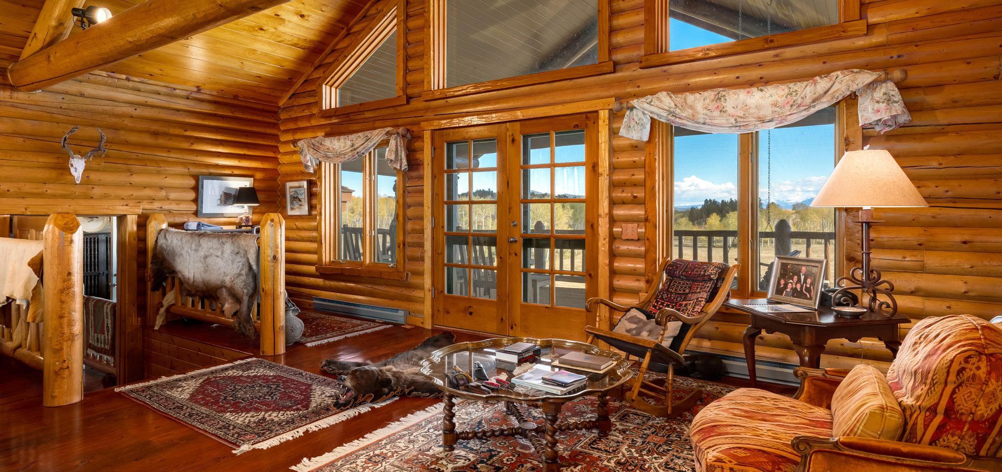 • 6,116 square foot cozy log home built in 1978 with a significant remodel in 1993 including a large master suite, 4 more guest bedrooms, 5 bathrooms and a ½ bath, multiple living areas and a home theatre.