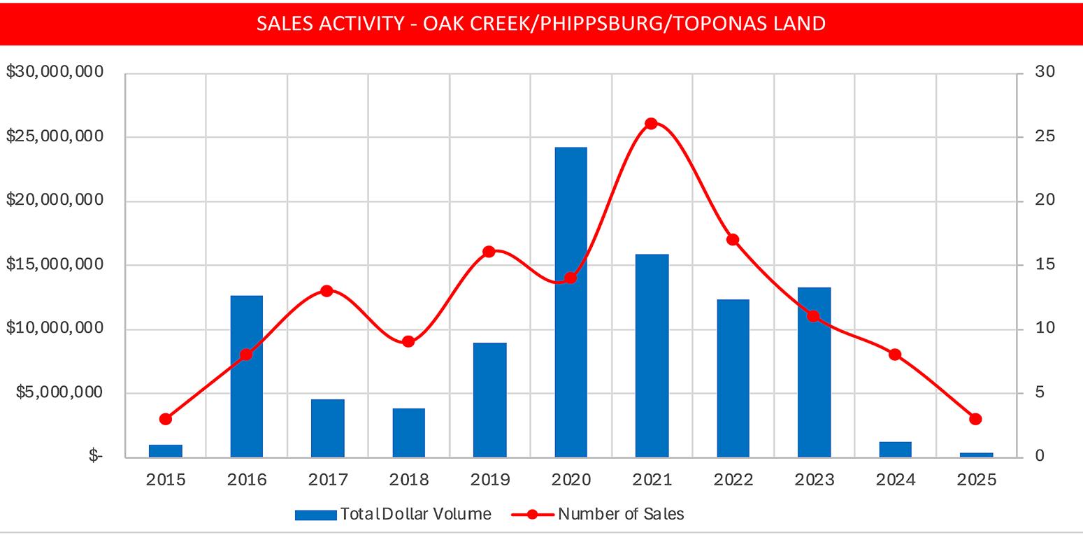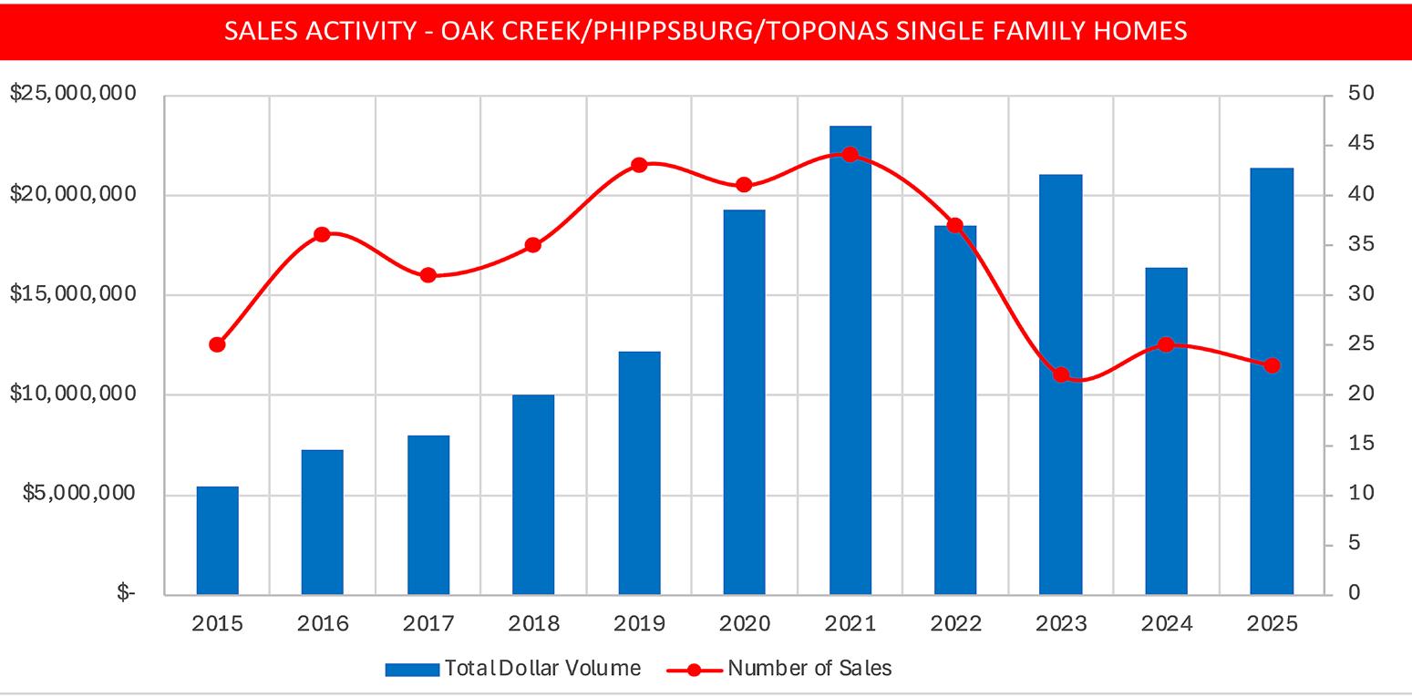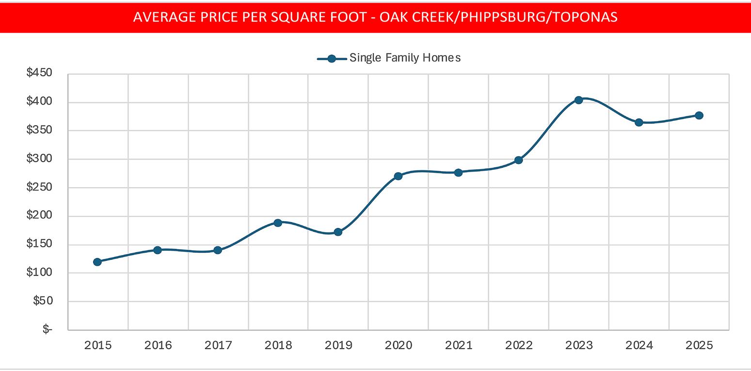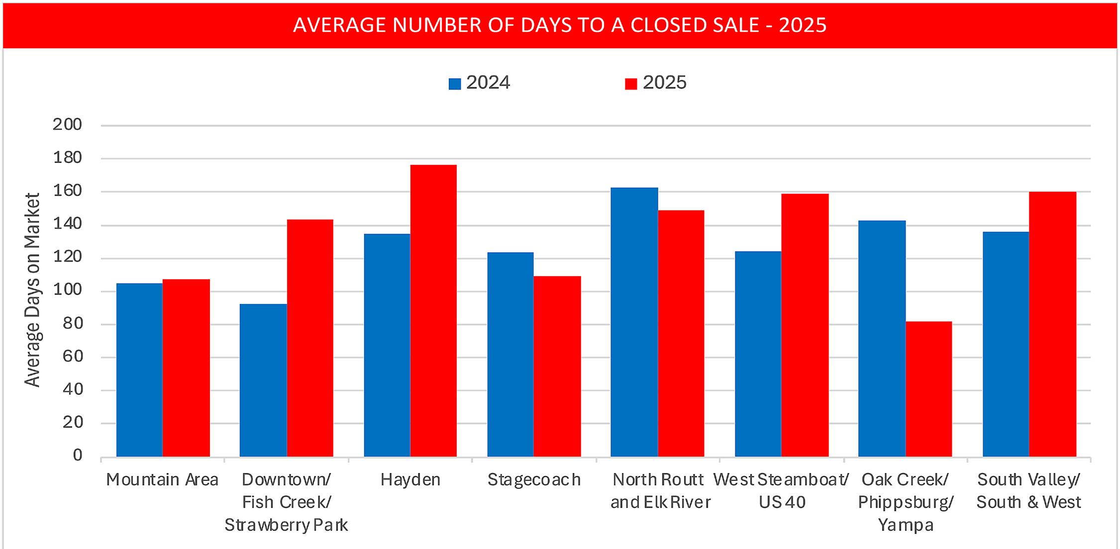 • In 2025, the Oak Creek/Phippsburg/Yampa area held that distinction with an average DOM of 82.