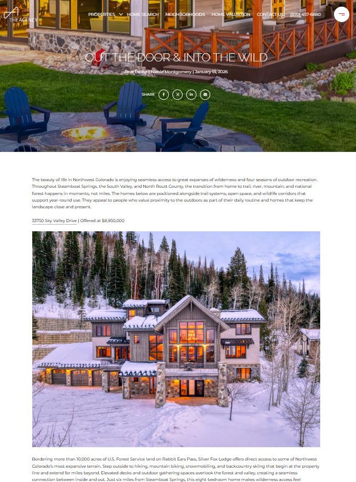 At the start of 2026, The Agency’s listings were featured across leading regional and national platforms, extending our reach well beyond the Steamboat market.