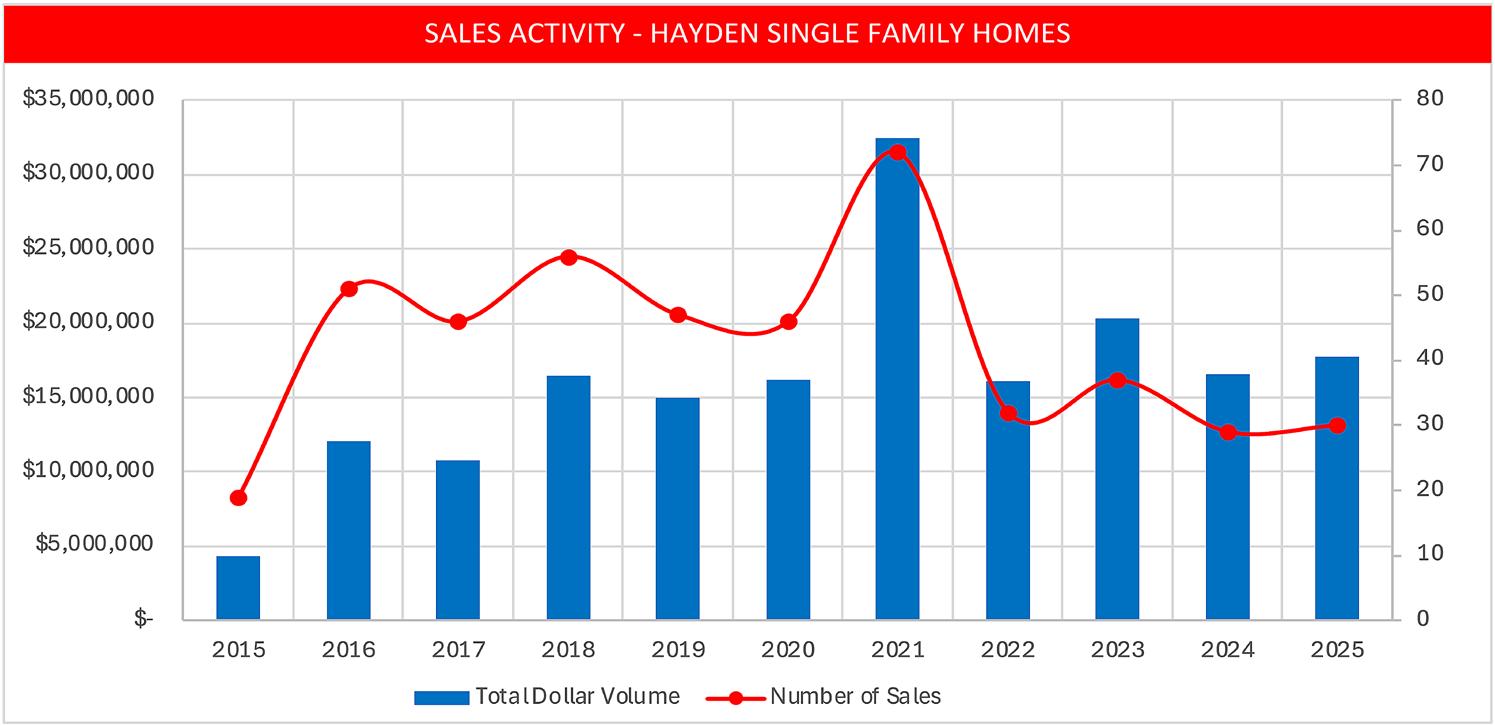 It is important to view this data in context. These markets operate with very limited inventory and small transaction counts, which can amplify year-over-year swings. Hayden is an exception, with a meaningful increase in rental housing inventory influencing activity.