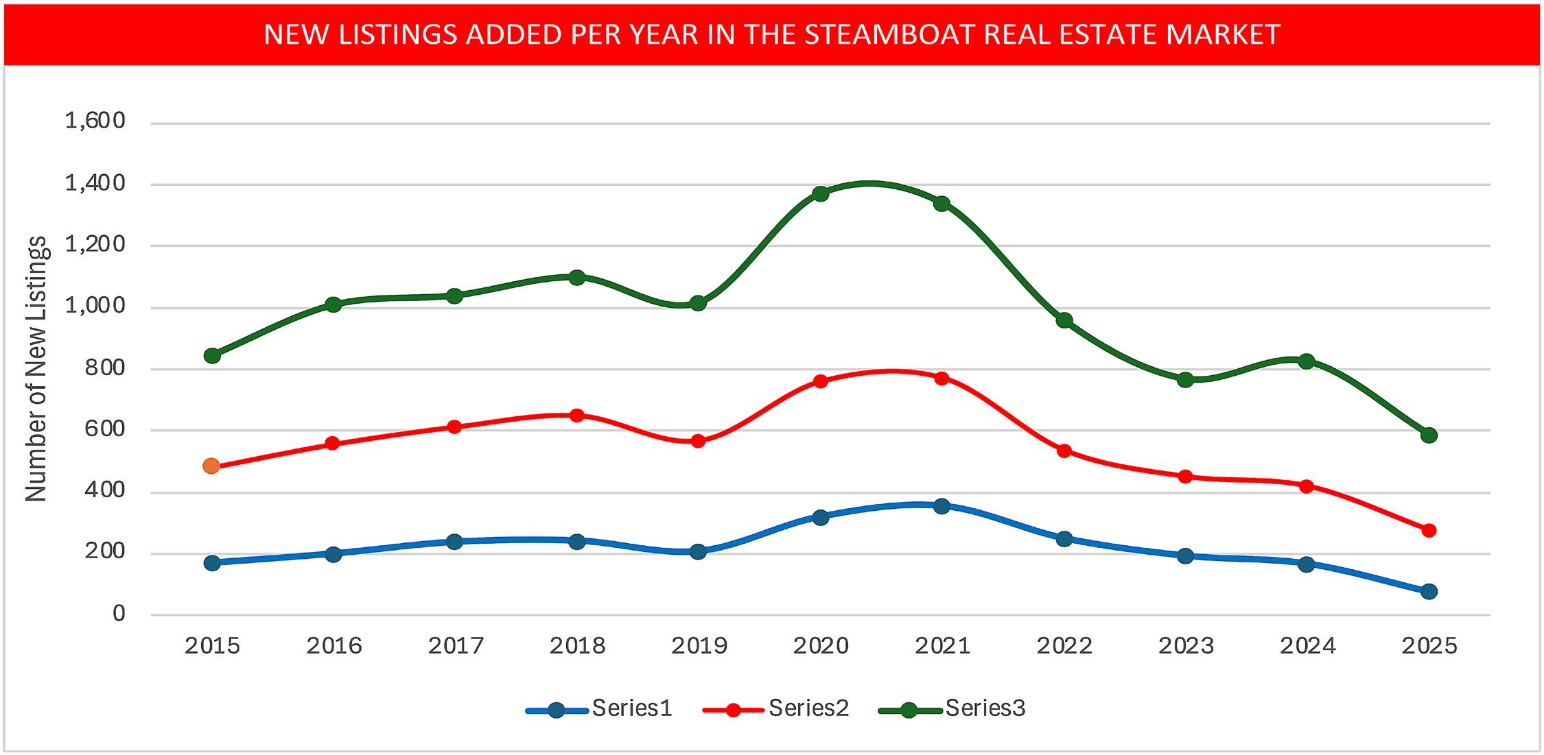 • Supply in Routt County continues to tighten, with 2025 seeing fewer properties coming available for sale than any other year.