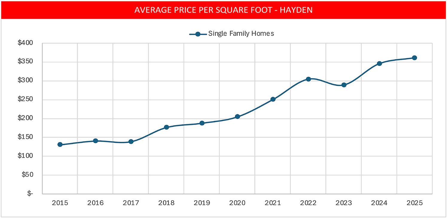 In Hayden, average price per square foot for single-family homes reached a new high of $361/sf. See Market Trends on page 6 for details.