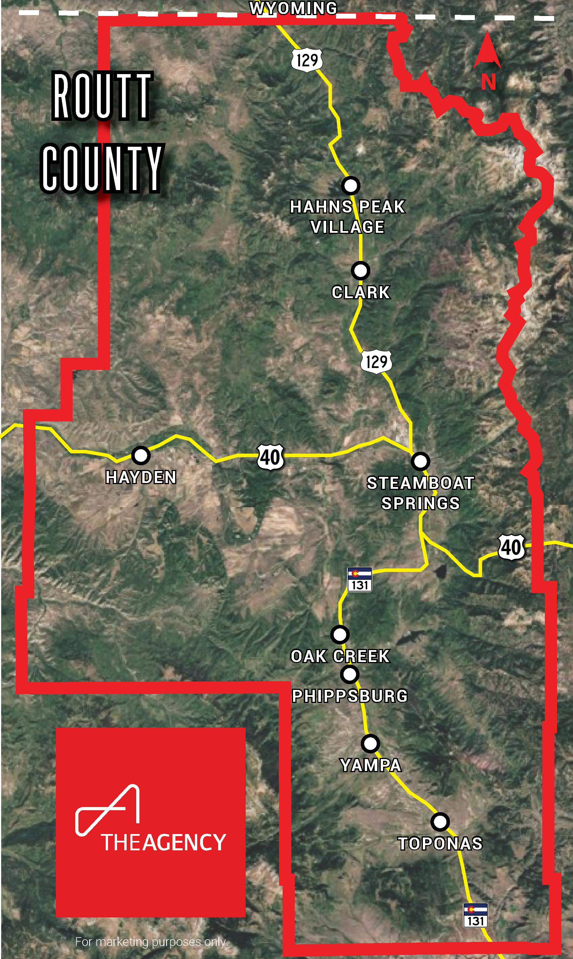 A quaint bedroom community 20 miles south of Steamboat, Oak Creek has a charming downtown with a grocery store, shops, restaurants and library. A little further south are the communities of Phippsburg, Yampa, and Toponas, where properties are predominantly large parcels and ranchlands, with Phippsburg and Yampa offering small downtowns and commercial offerings.