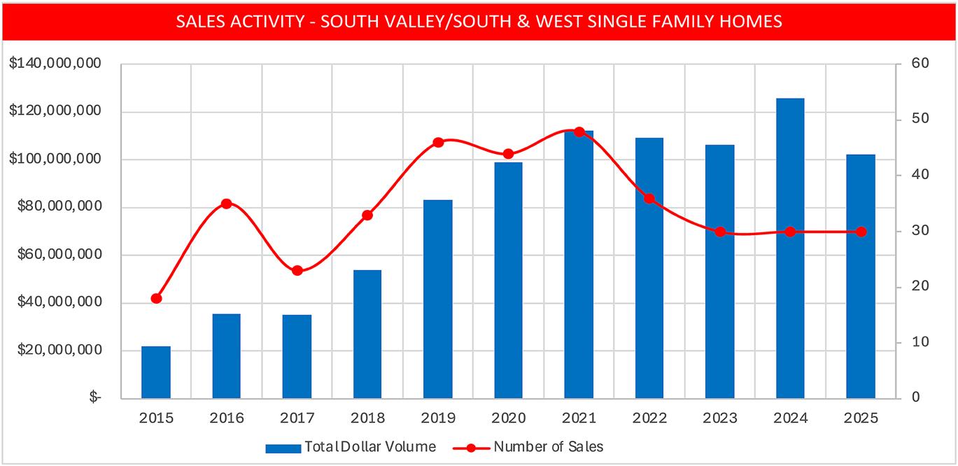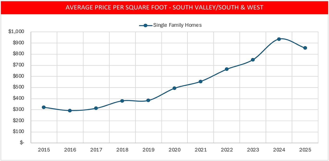 • The South Valley is one of the few areas where the single-family average price per square foot declined by 8%.