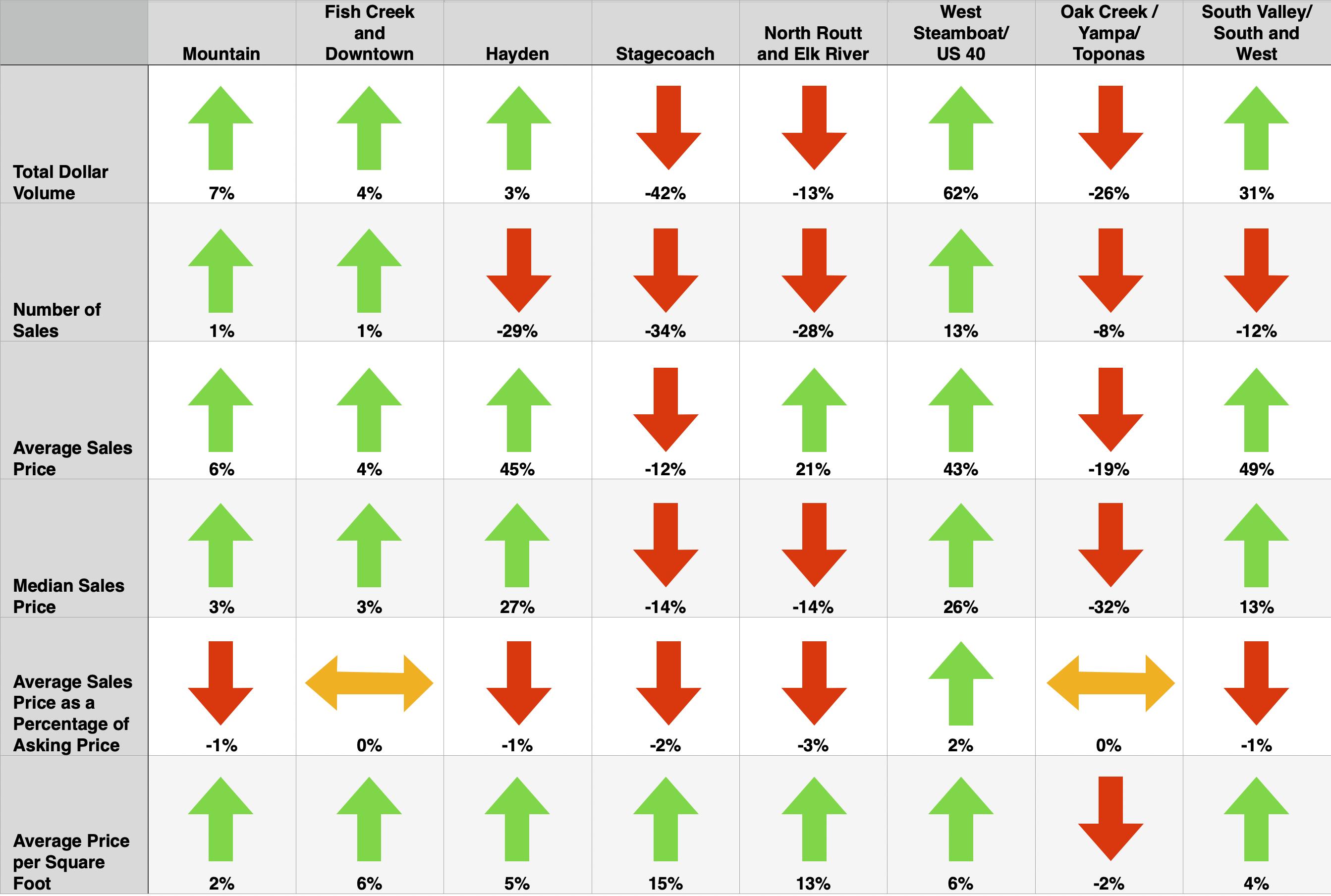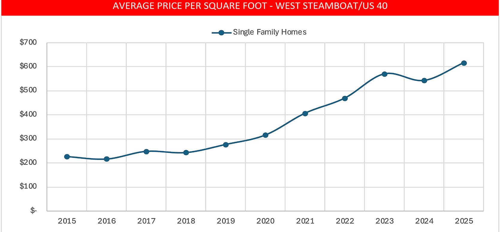 West Steamboat saw record-high total sales volume, with price per square foot trending upward to $616/sf.