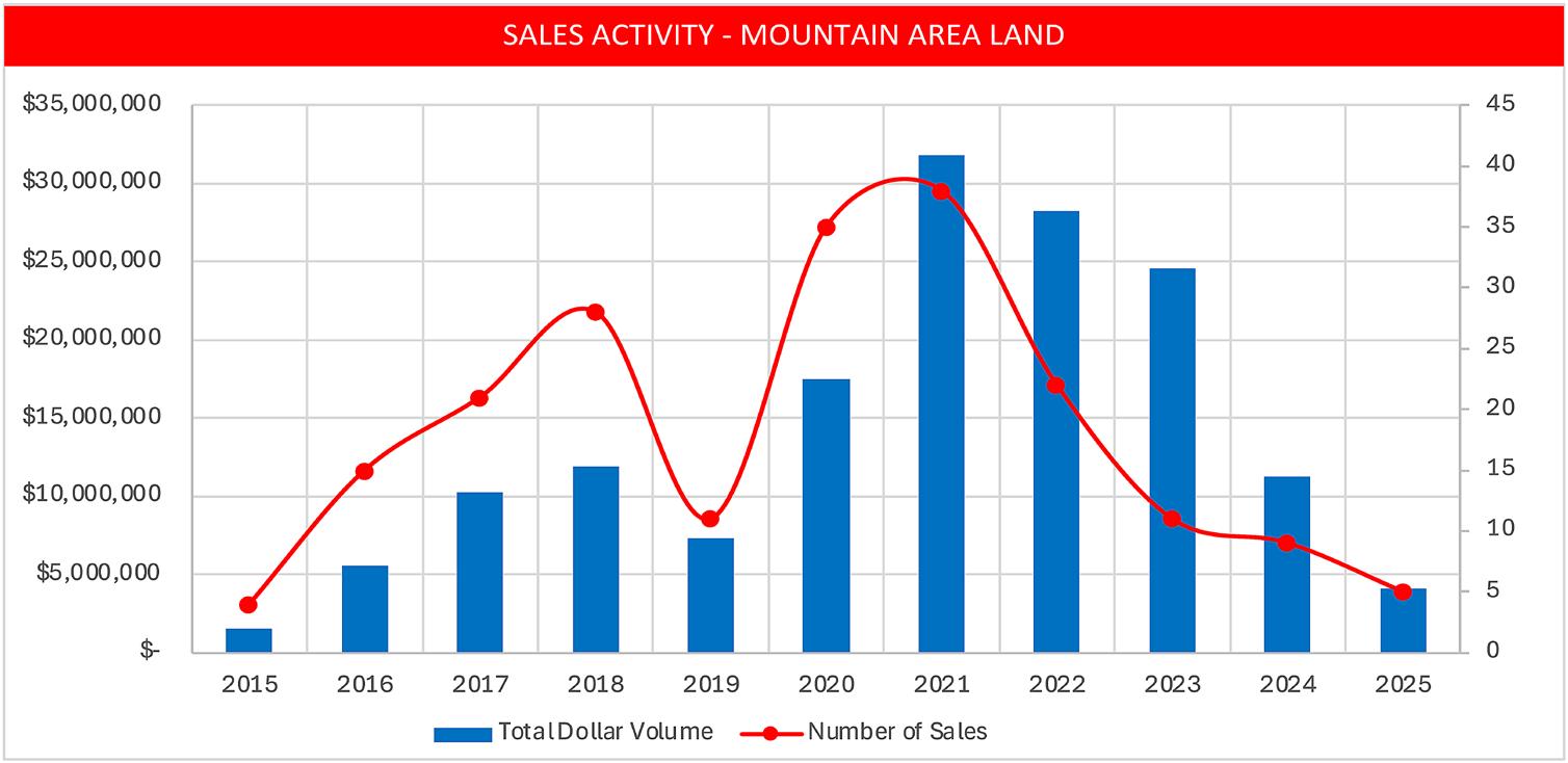 • Sales of land are at a low not seen since 2015, which is indicative of the few parcels of available land in the Mountain Area, as infill and new development take place.