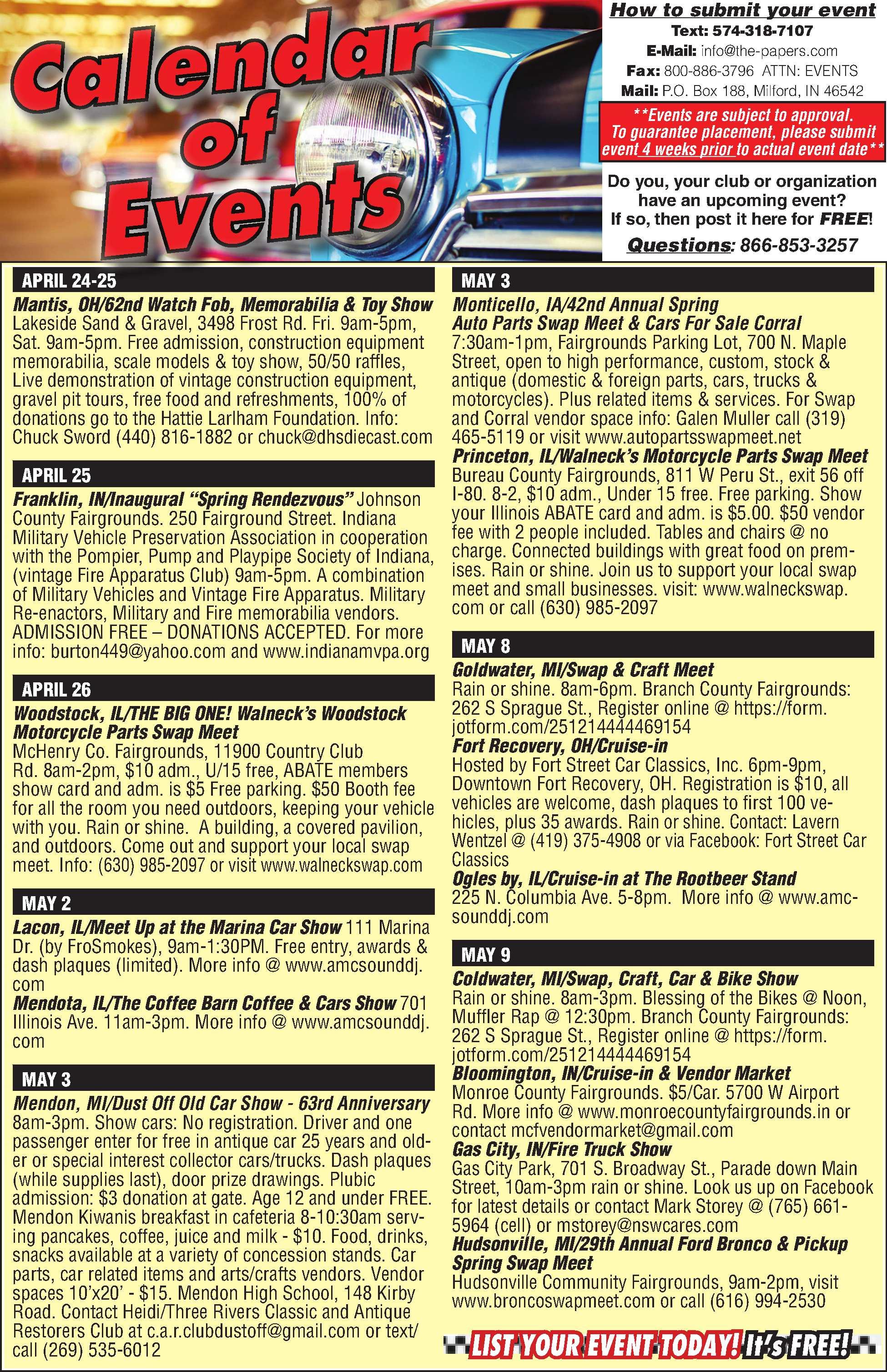 PARTSSTOREFOREARLYCAMARO, CHEVELLE&NOVAS. Sheetmetal,bumpers, moldings,carpet,interiors,rubberseals&much, muchmore.Alwayslookingtobuyprojectcarsor partscars.Stopbyourstore,open6daysaweek: M-F9a.m.-6p.m.&Sat.9a.m.-1p.m.Locatedone halfmileEastofLucasOilRacewayPark. Freeman’sMusclecarMotorsports,10747E.US Hwy.136,Suite101,Indianapolis,IN46234. email:clarencefreeman@att.net 317-328-8360 568110