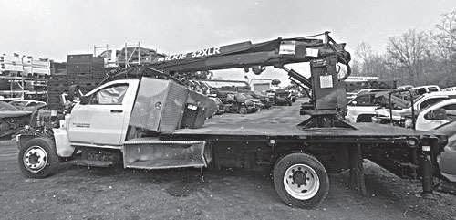 Single cab, PTO alum. dump box w/tarp roll, Duramax diesel w/automatic trans., 4WD, only 21,000 mi., salvage title due to light flood, runs/drives well, clean body, ready to work.