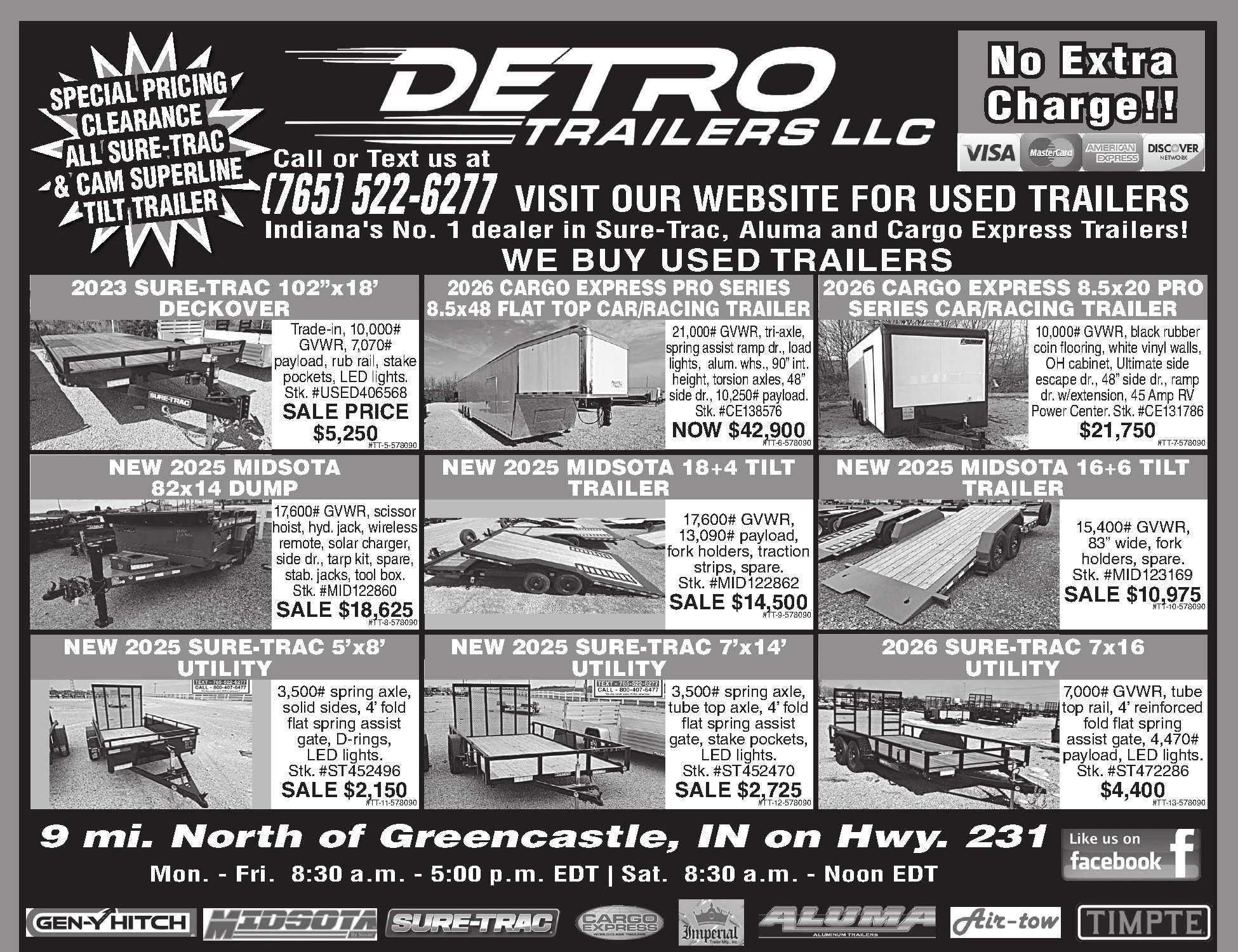 NEW2025AND2026CHALLENGERNGB. 35ton,fullbucketwell,self-contained,Honda ponymotorpkg.,102”x44’,Northernpkg., I-beamsills,PLUSIthrowin$6,000ofFREE usableoptionsandIprovideserviceafterthe sale.WearetheoldesterChallengerDealerin theU.S.,callusbeforeyoubuyandlet’s comparetrailers.35tonNGB$48,000+tax,52 tonNGB$56,600+tax.HamiltonEquipment, Linton,IN. www.hamiltonsales.net 812-847-2805