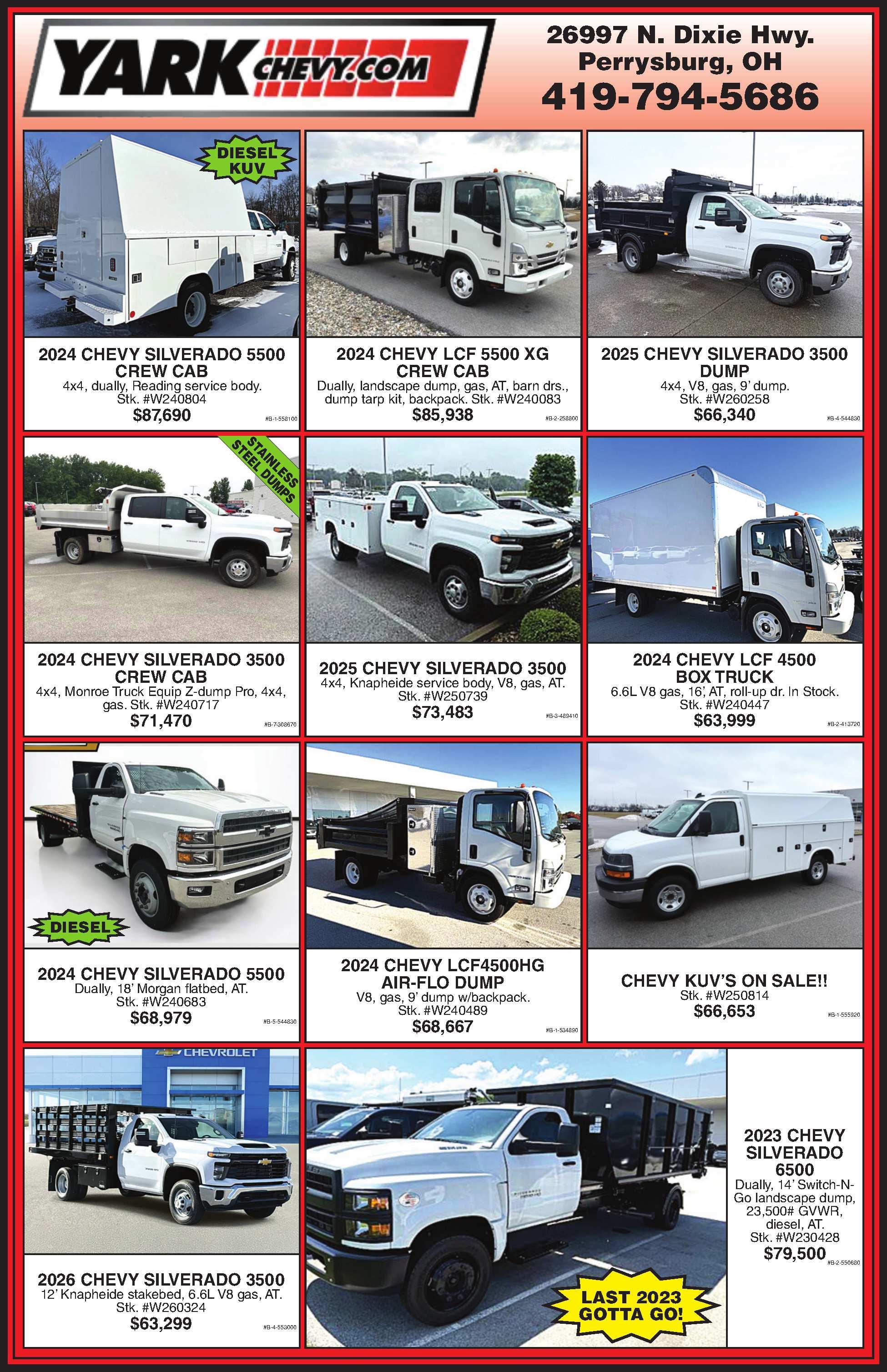 4x4, 6.6L gas w/Monroe 8’ service body. Stk. #3458