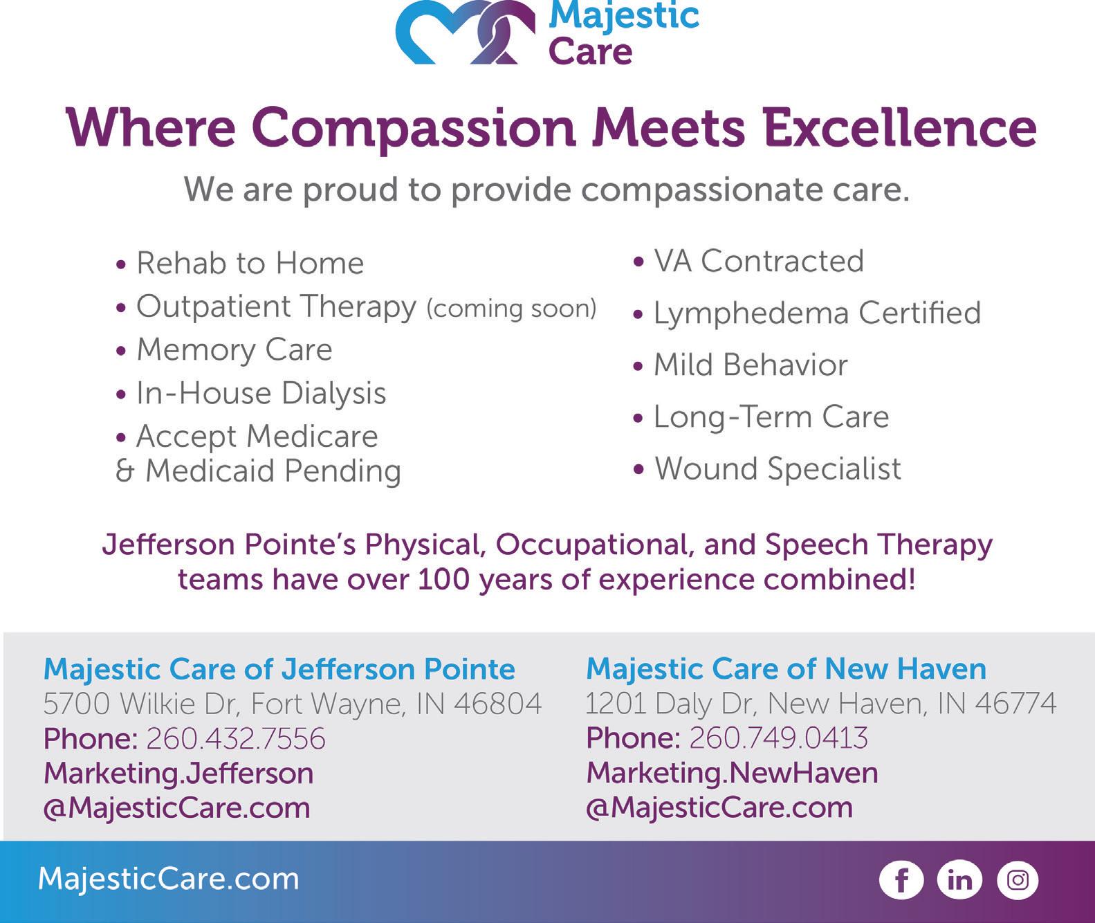 Directories will be available for pickup at the Community Center, 233 W. Main St.; Aging and In-Home Services, 8101 W. Jefferson Blvd.; Kingston at Dupont, 1716 E. Dupont Rd.; The League, 5821 S. Anthony Blvd.; and branches of the Allen County Public Library. To request a copy to be mailed to you, call Aging & In-Home Services of Northeast Indiana at 260-745-1200. The directory is also available on the COSS website at: www.councilonseniorservices. org.