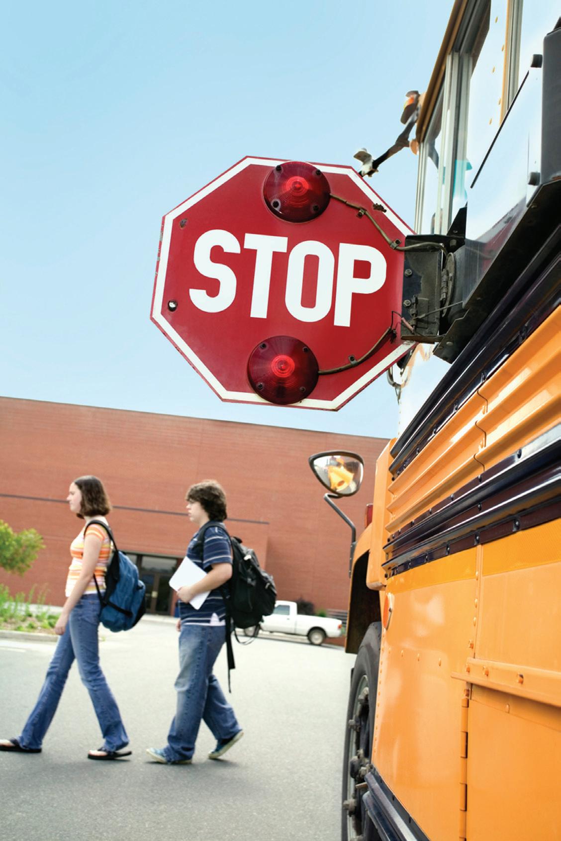 Red Flashing Lights & Extended Stop Arms signal that the bus has stopped, and children will be entering or exiting the bus. This means you should stop your car and wait until the red lights stop flashing, the extended stop sign is withdrawn and the bus resumes moving.