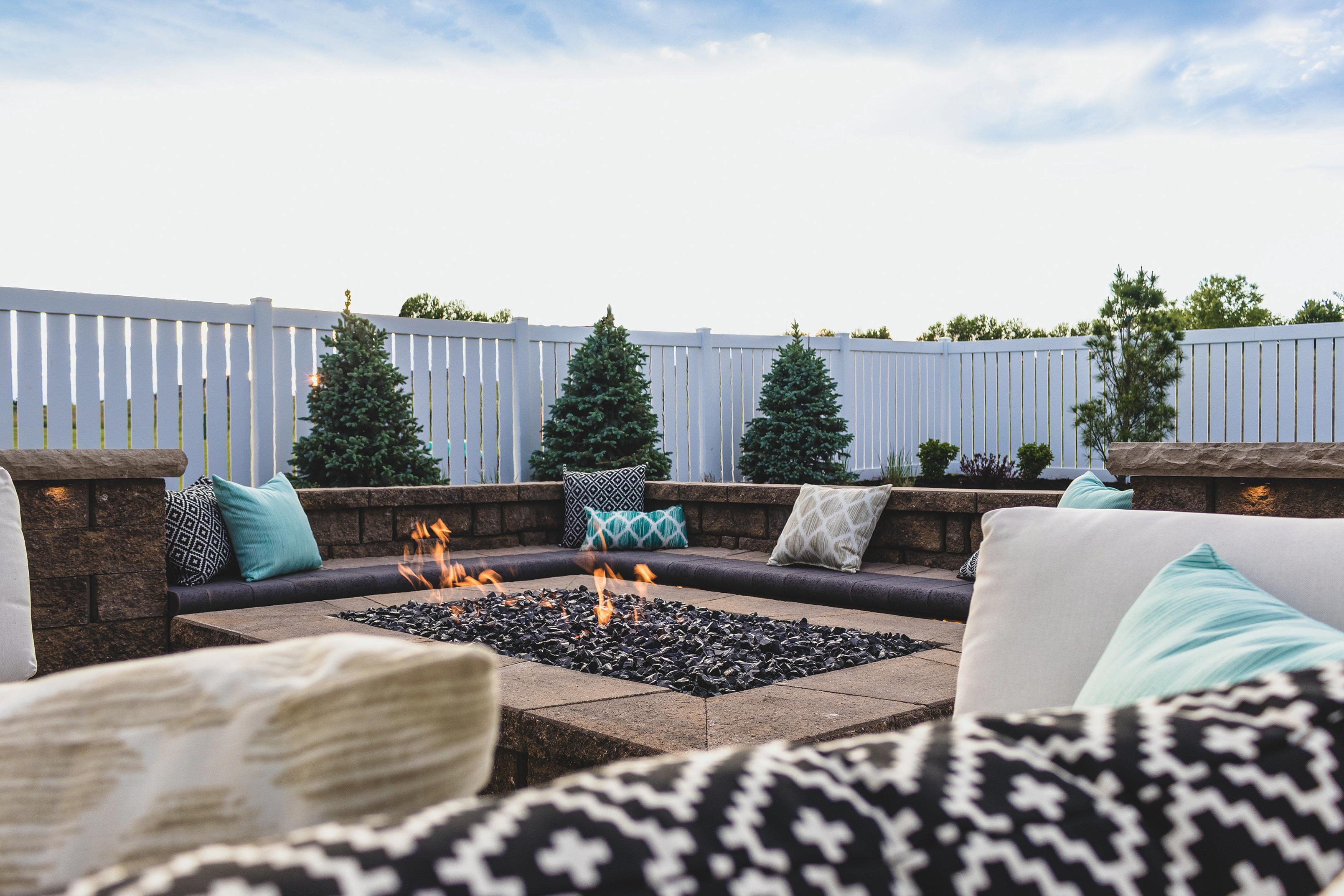 And finally, arguably one of the most impactful elements to add in a backyard oasis: the fire feature. Whether it’s comfy chairs around a bonfire pit or upgrading to an outdoor fireplace in your outdoor living area, a fire feature quite literally adds warmth and an opportunity for gathering after a day of being out on the water.