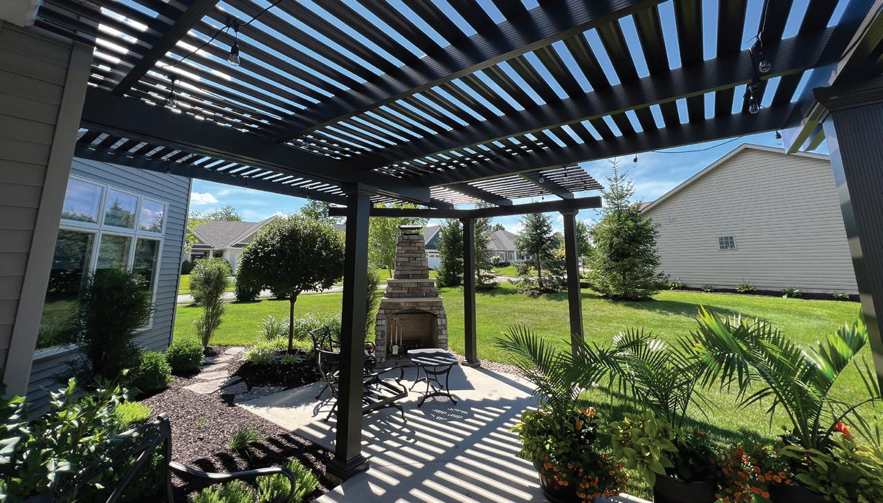 An outdoor living space should be able to flow and function as a dining area, a source of entertainment, and a relaxation spot. This space should essentially feel as if you’re extending the interior of the home to the outdoors. Consider adding a space for shade and protection from the sun—this could be as simple as an umbrella over a dining table or invest in a pergola installation over a back patio.