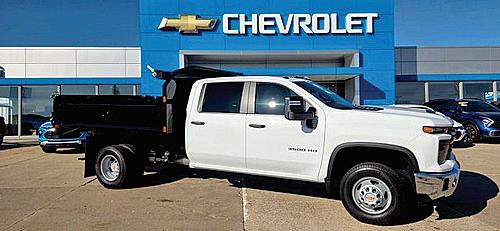 Single cab, PTO alum. dump box w/tarp roll, Duramax diesel w/automatic trans., 4WD, only 21,000 mi., salvage title due to light flood, runs/drives well, clean body, ready to work.