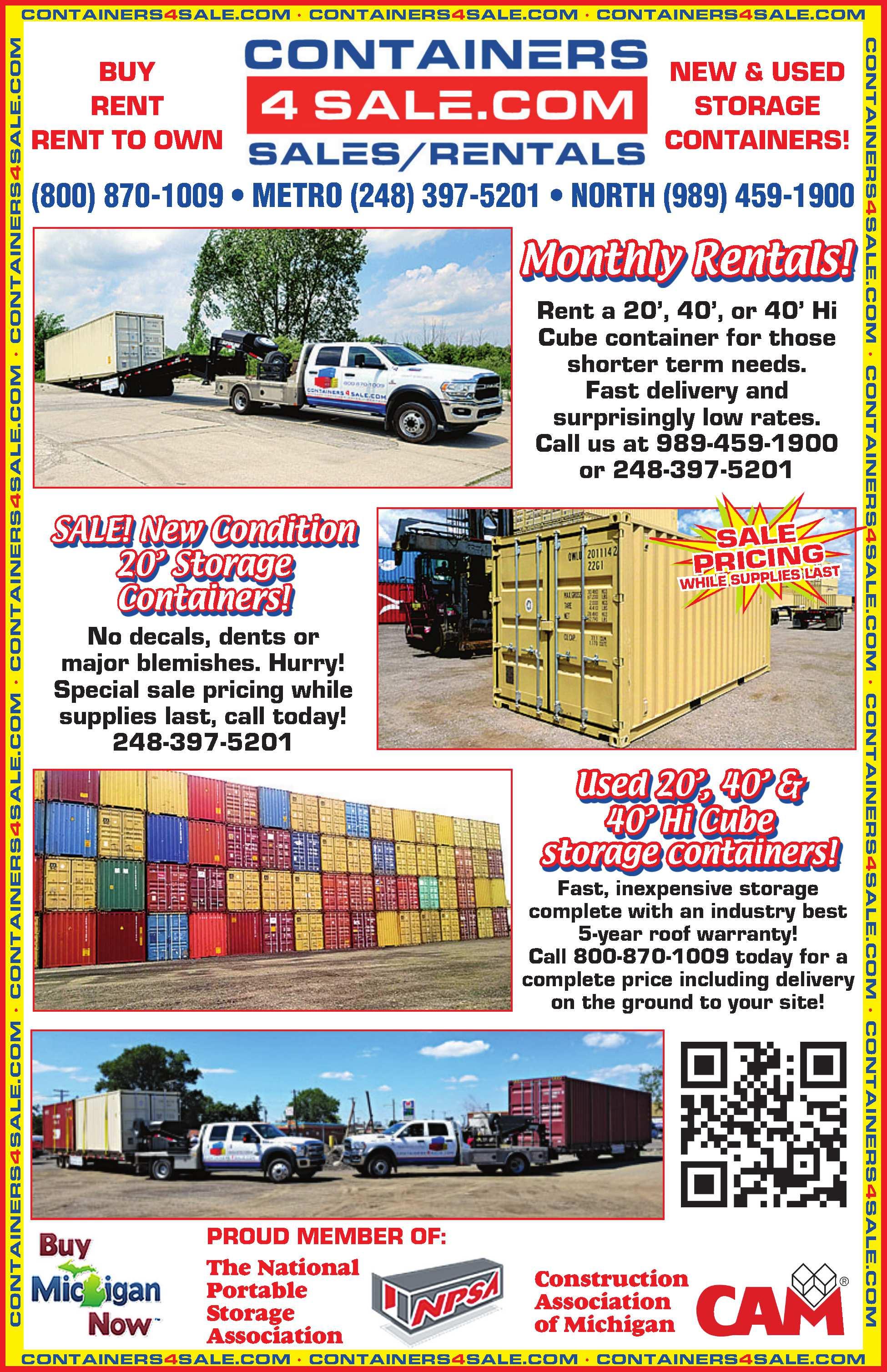 STANDARDANDHIGH SHIPPINGCONTAINERS. 20ft. and40ft.,availableforpurchase orrent.Deliveryalsoavailable. Chicago,IL. 773-297-9089
