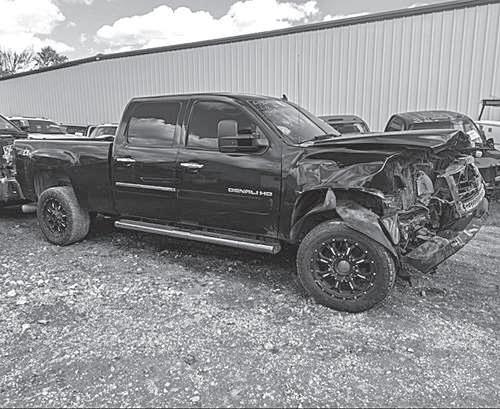 Single cab w/Knapheide steel dump box, fold-down sides, elect. over hyd., Duramax diesel, 4WD, automatic trans., 54,000 mi., runs/drives well, clean body, salvage title due to previous bed dmg. that has been repaired, ready to work.