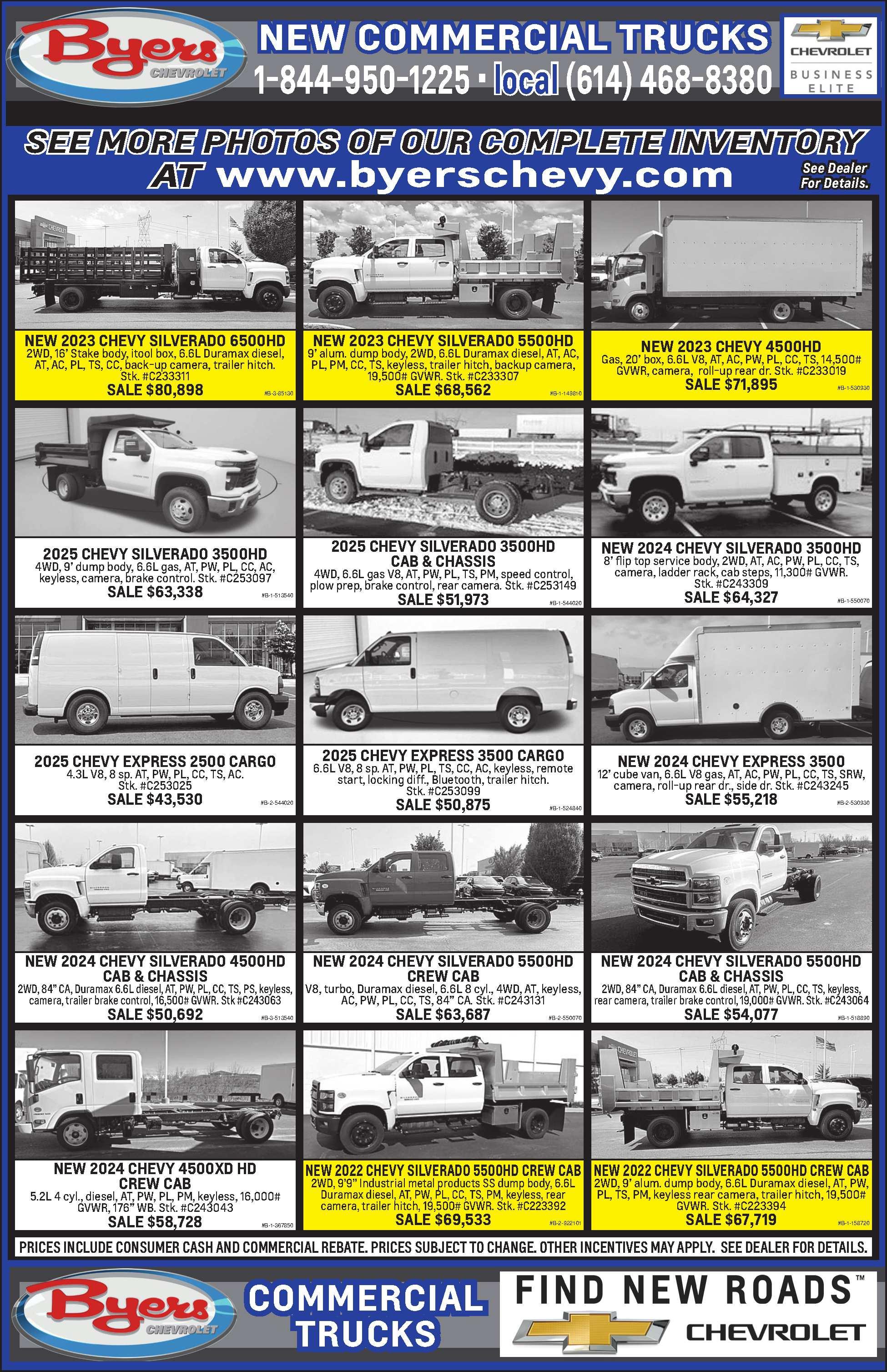 4x4, 6.6L gas w/Monroe 8’ service body. Stk. #3458