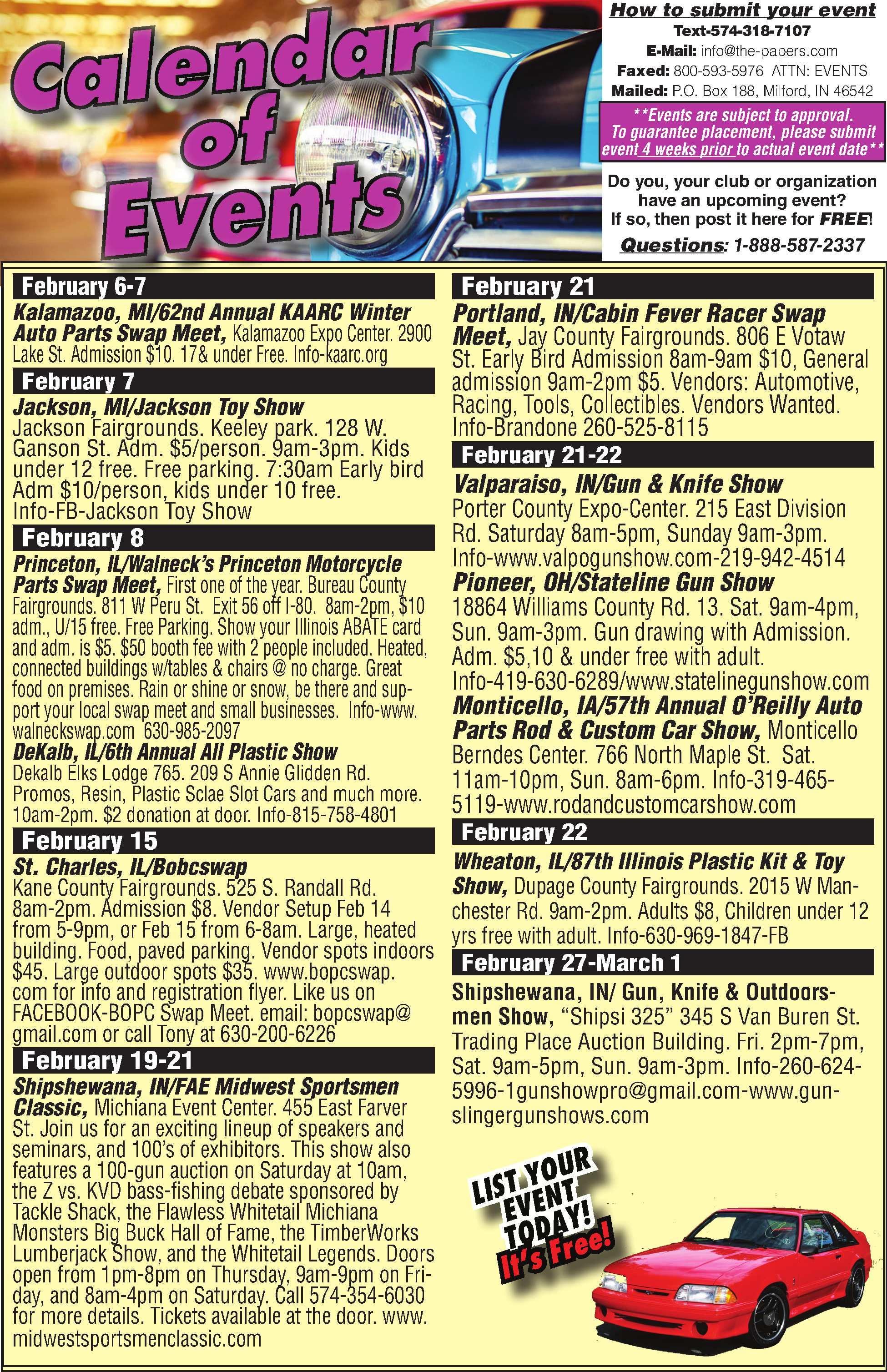 WEAREAFULLLINERESTORATION PARTSSTOREFOREARLYCAMARO, CHEVELLE&NOVAS. Sheetmetal,bumpers, moldings,carpet,interiors,rubberseals&much, muchmore.Alwayslookingtobuyprojectcarsor partscars.Stopbyourstore,open6daysaweek: M-F9a.m.-6p.m.&Sat.9a.m.-1p.m.Locatedone halfmileEastofLucasOilRacewayPark. Freeman’sMusclecarMotorsports,10747E.US Hwy.136,Suite101,Indianapolis,IN46234. email:clarencefreeman@att.net 317-328-8360 549930