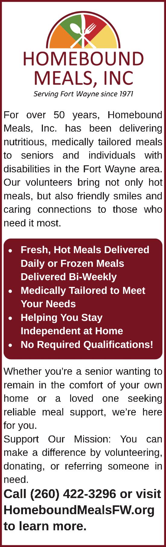 • Assisting Executors, Attorneys, Trustees Huntington 260.356.3911 | Fort Wayne 260.459.3911 www.SeniorRelocationServices.info