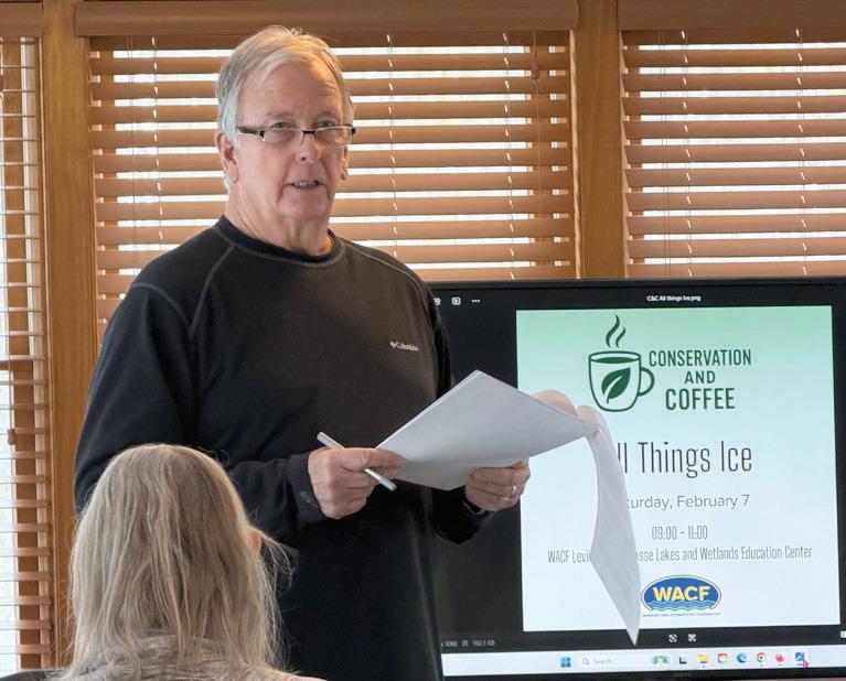ICE BOATING Bob Fanning presented information on ice boating at the February Conservation & Coffee event, which focused on “All Things Ice.” The March gathering will highlight “Living on the Land” on Saturday, March 7. Photo provided by Wawasee Area Conservancy Foundation.