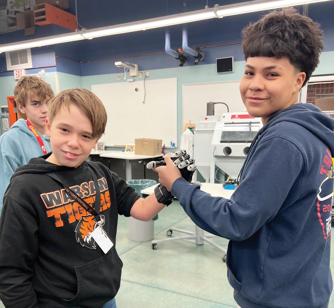 A group of Edgewood Middle School classmates, along with their teacher, Abbi Richcreek, came together to create a prosthetic hand for student Owen Lewis, who has a limb difference in his left hand. Owen was also an active member of the team, helping to size and build his own prosthetic hand.