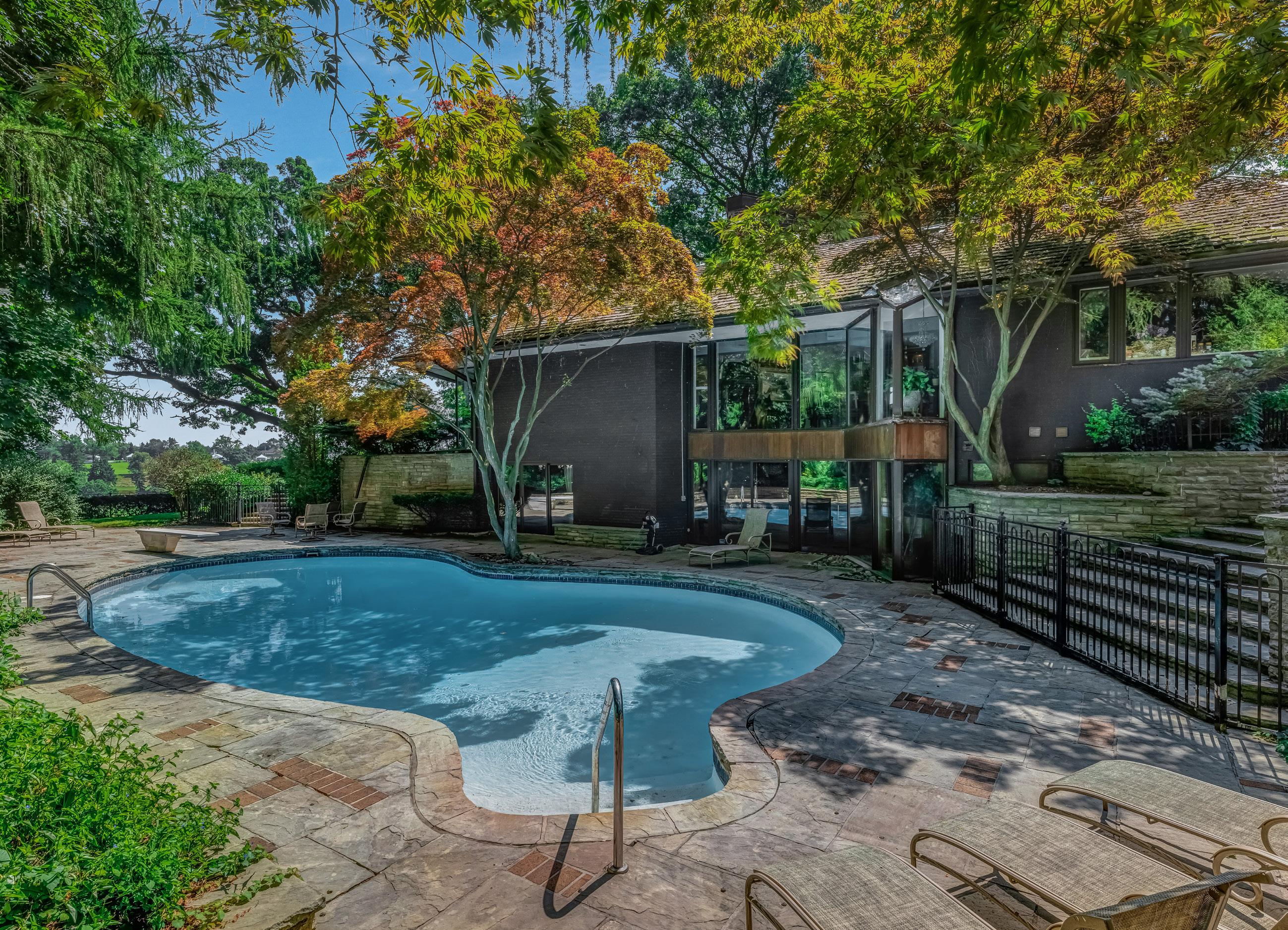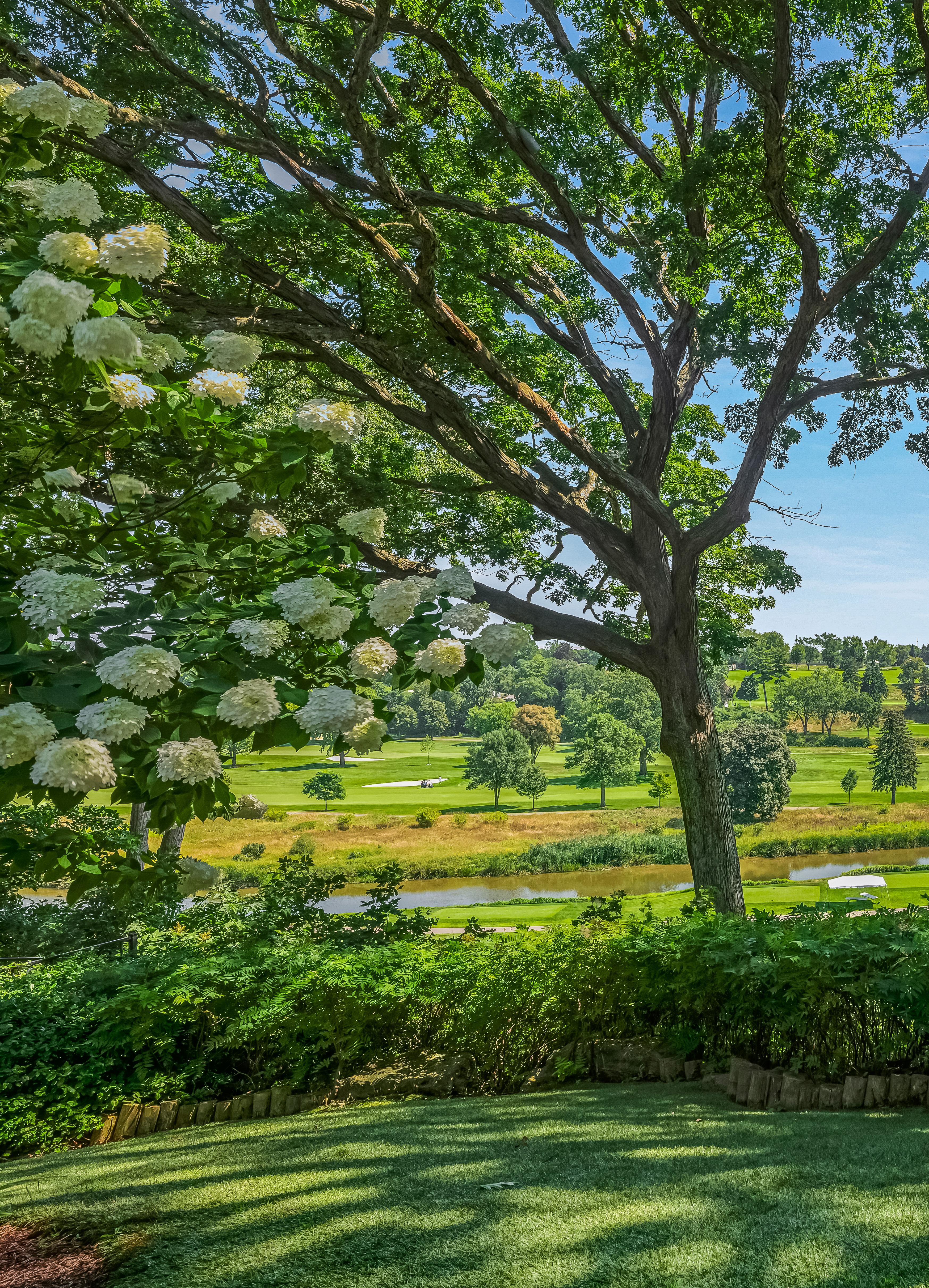 Outdoors, the estate transforms into a private sanctuary, where manicured grounds and mature trees frame a resort-inspired setting of unparalleled beauty. A long, tree-lined driveway introduces a grand arrival, while tiered stone landscaping, expansive terraces, and a stunning saltwater pool create an environment designed for both relaxation and refined entertaining, all set against the backdrop of sweeping golf course views.