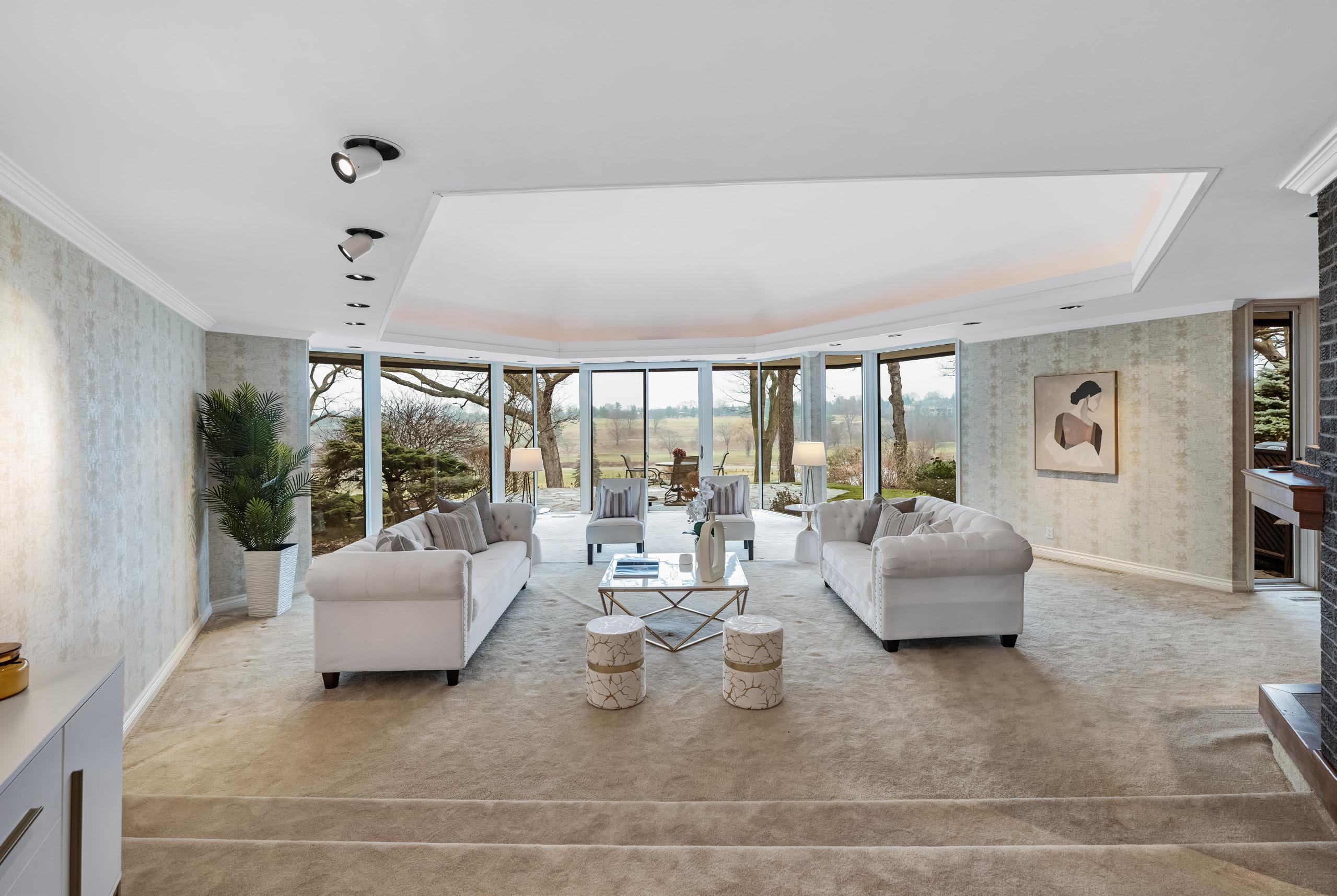Flowing effortlessly from the kitchen, the principal living areas showcase an elevated standard of comfort and sophistication. A sun-drenched living room, enhanced by a subtle step-down design and a captivating wood-burning fireplace, opens to panoramic golf course views through expansive glass. Adjacent spaces, including an intimate reading nook and an elegantly appointed dining area, provide the perfect backdrop for both quiet moments and memorable gatherings.