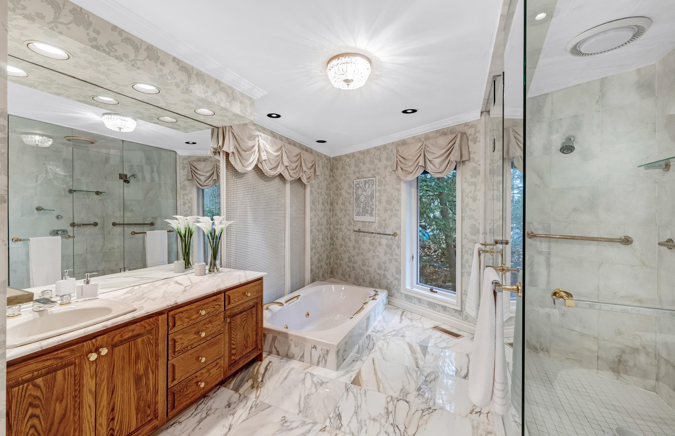 Occupying an expansive 150 x 386 ft lot, the home unfolds across an impressive 5,806 square feet of thoughtfully curated living space, offering a seamless blend of grandeur and functionality. Surrounded by multimillion-dollar estates, the residence exudes a refined presence while maintaining a warm, familyoriented atmosphere ideal for both everyday living and elegant entertaining.