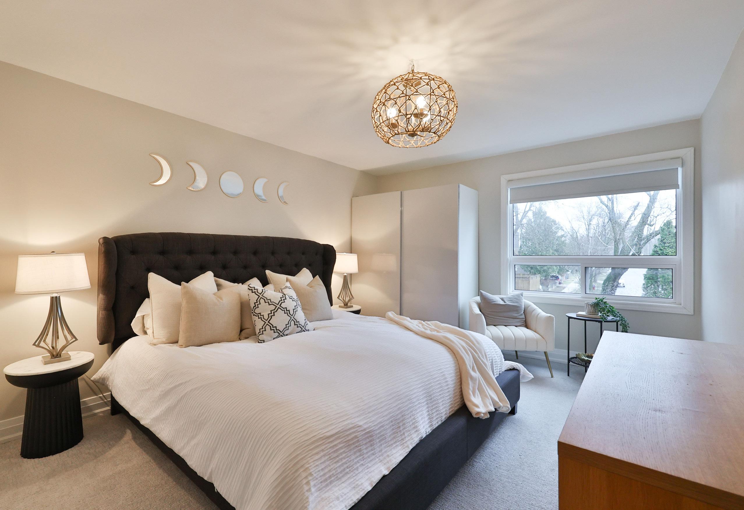 Ascending to the upper level reveals three generously proportioned bedrooms, each designed with comfort in mind. The primary suite serves as a tranquil sanctuary, complete with a walk-through closet and a beautifully renovated ensuite. A skylit family bathroom with double vanities elevates the everyday routine, while abundant closet space throughout ensures functionality for growing families.