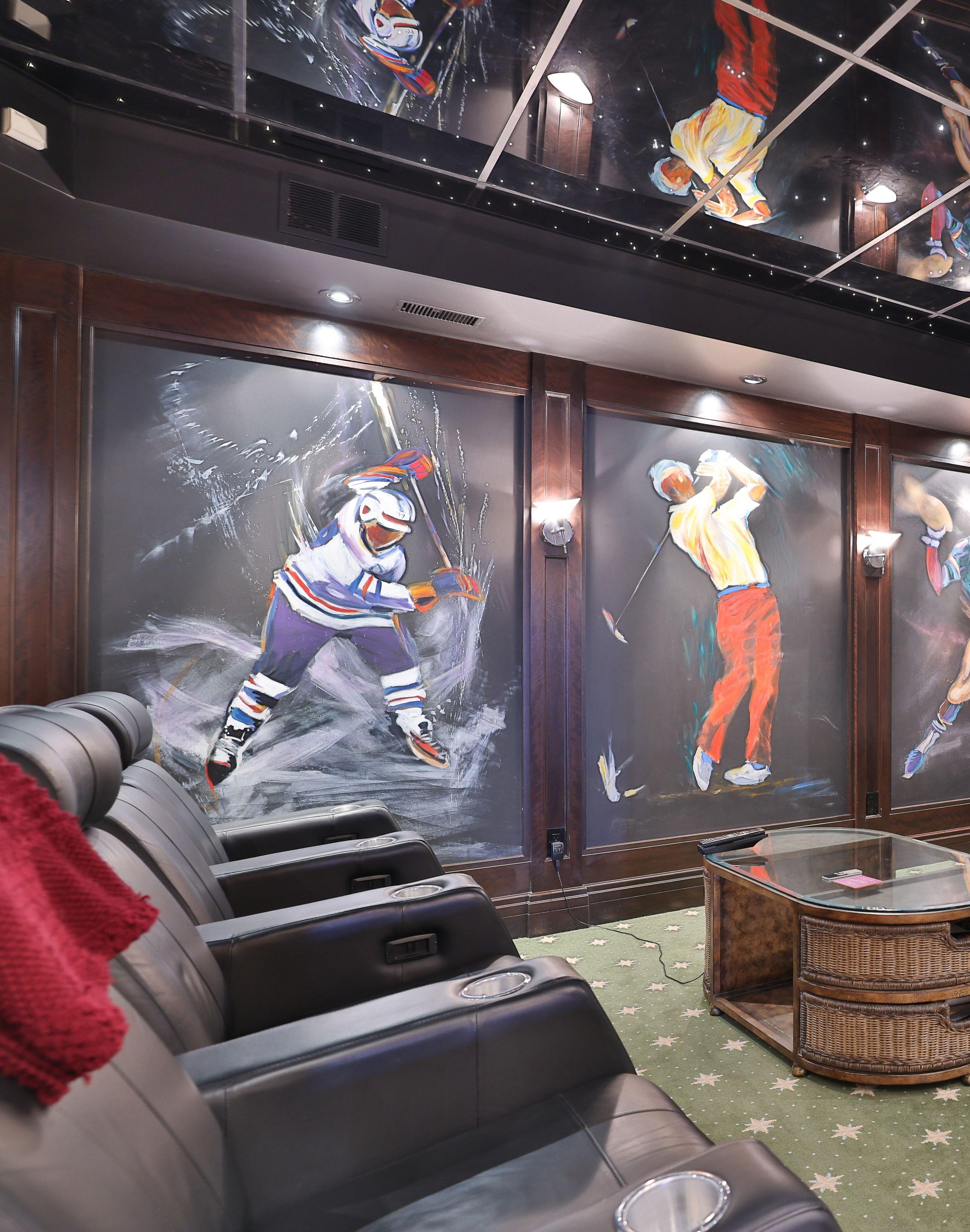 The lower level is a complete lifestyle destination in its own right, designed to balance comfort, leisure, and large-scale entertaining with effortless ease. A spacious recreation lounge provides ample room for gatherings, anchored by a billiards area and supported by an integrated SubZero refrigerator, two freezer drawers, and a Miele dishwasher. A private cinema — fully equipped with home theatre technology, a dedicated screen, and tiered seating — delivers an immersive entertainment experience without leaving home. A professional-grade fitness studio accommodates active daily routines, while a climate-controlled wine cellar with adjoining tasting area adds a refined and sophisticated touch suited to intimate tastings or showcasing a prized collection.