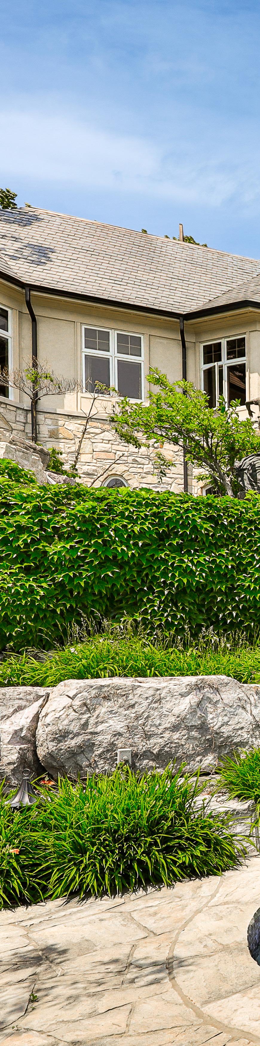 timeless finishes, all flowing in an intuitive open-concept arrangement. Multiple gas fireplaces add warmth and ambiance throughout, while numerous walkouts on both levels dissolve the boundary between interior and exterior. Two doublecar garages, a main-floor laundry, a well-appointed mudroom, and a private elevator connecting the lower level, main floor, and rooftop ensure that practicality is woven seamlessly into the grandeur.