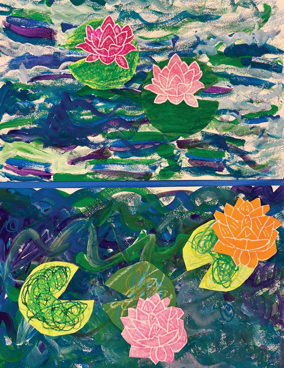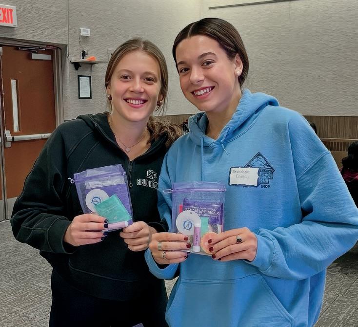 ANNA BULTÓ ʼ22, JANE CEPEDA ʼ22, and CLARA BULTÓ ʼ24 created care packages for nurses and colorful placemats for hospice patients for the Day of Service at Overlook Medical Center as part of the Junior Twigs.