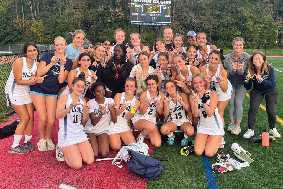 The 2024 Varsity Pingry Field Hockey Team with Coach Julie Delinsky after their win over Chatham High School on October 8.