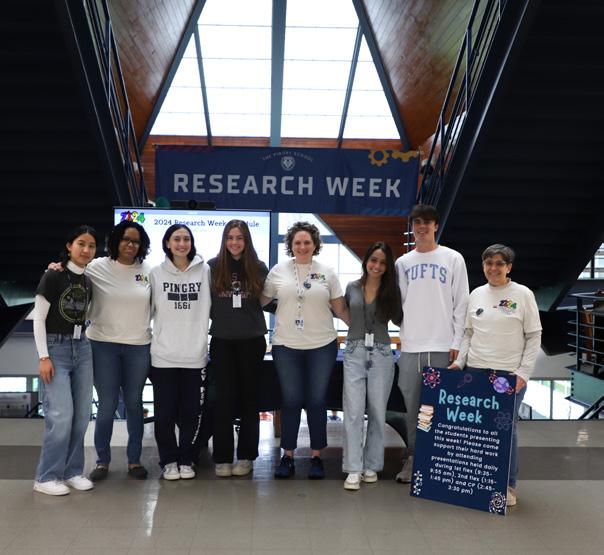 challenges. Next, Julia Eng (VI), Grace Fernicola (VI), and Ali Santana (VI) presented their experiences in the American Modernism HIRT, as well as how their passion for American Modernism and the complexity of the literature has influenced their outlook on life. Finally, an alumni speaker, Bridget Harrison ‘15, spoke about how her interest in biology and her involvement in biology research at Pingry led her to a career at a prestigious biotechnology company.