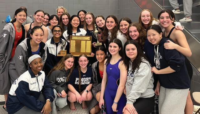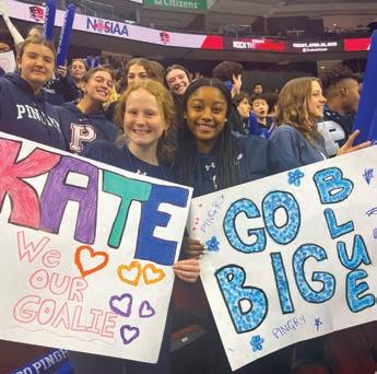 Over 600 Upper School students, faculty, and staff left the Basking Ridge Campus in early March to travel to Newark’s Prudential Center to cheer for the Girls’ Varsity Ice Hockey Team in the first Girls’ Ice Hockey NJSIAA State Championship Game in Pingry history. As Head of School Tim Lear, Upper School Director Dr. Reid Cottingham, and Director of Athletics and Student Success Carter Abbott wrote in a letter, “This is a monumental achievement for Pingry Girls’ Ice Hockey . . . This is a moment for us to come together as a community, cheer each other on, and build one another up.” Head Coach Alex Nanfara P’33, ’36, Pingry’s Assistant Director of Communications, Social Media Strategy & Athletics, was named The StarLedger Coach of the Year.