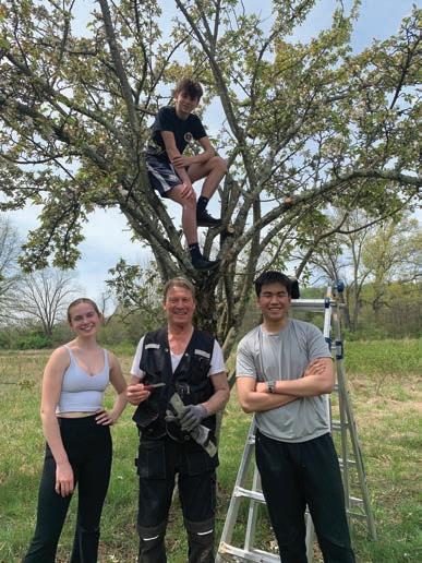 Claus Hamann ’69 has been back on campus in recent months, not for Alumni Soccer Games or Reunions, which were his original reasons for staying in touch with Pingry, but to help with horticulture. He grew up with parents who loved to garden and had fruit trees, but it wasn’t until his retirement in 2015 and moving to Maine—where he purchased a property that has apple trees—that he had time to learn about pruning and grafting. Now, thanks to a connection with Pingry’s Development Office, Mr. Hamann visited Pingry in December and for Earth Day to work with Upper School Science Teacher and Assistant Director of Experiential Education (Sustainability) Olivia Tandon and students. In December, he was also a guest in Ms. Tandon’s Honors Environmental Science class to talk about orchards in the context of climate change, connecting orchards with biodiversity and a sustainable lifestyle, and “growing local.”