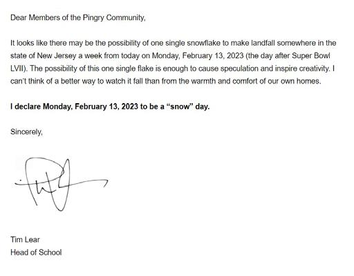 Calling the first snow day. (The fact that there was no snow didn’t diminish the thrill.)