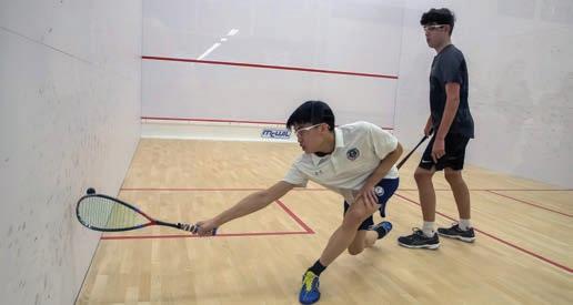 A glass squash court is set up in The Wilf Family Commons of The Carol and Park B. Smith '50 Middle School for three weeks.