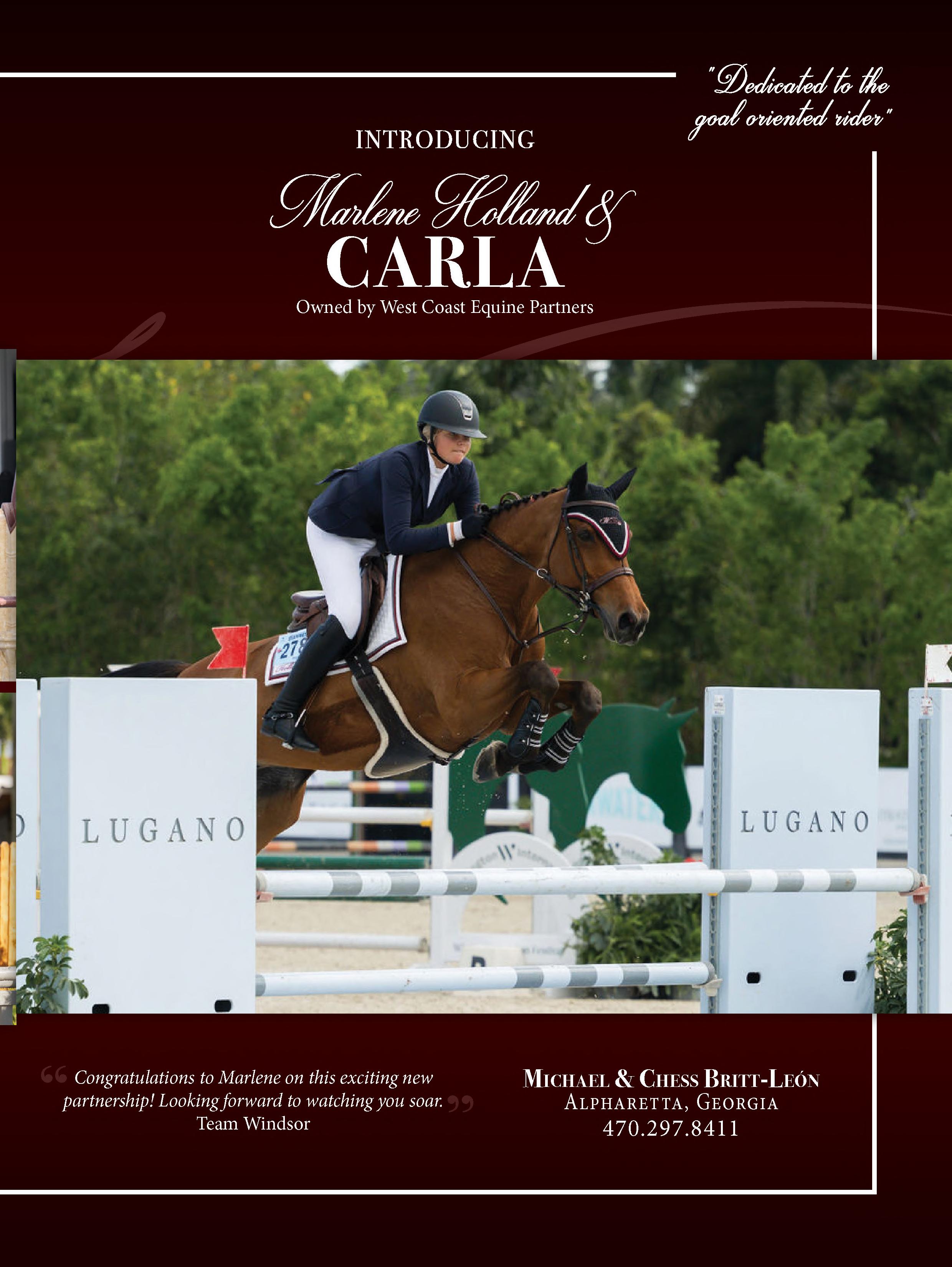 seemed so hard at first and now it’s something you don’t even think twice about, everything else will become simple eventually as well. Whether it’s riding anxiety, a bad habit, or a class seeming out of reach, everything becomes easier over time, and you have to trust the process and your trainers. • I’d be lost without... MTM Grateful. He has taught me so much and is always the ride that I look forward to when I am having a hard day at the show. I know I can get on him and have fun. • The best part about living in Ocala is ...is the land. At the farm where we rent stalls there is approximately 40 acres that we can ride out on, and it’s a nice mental break for the riders and horses.