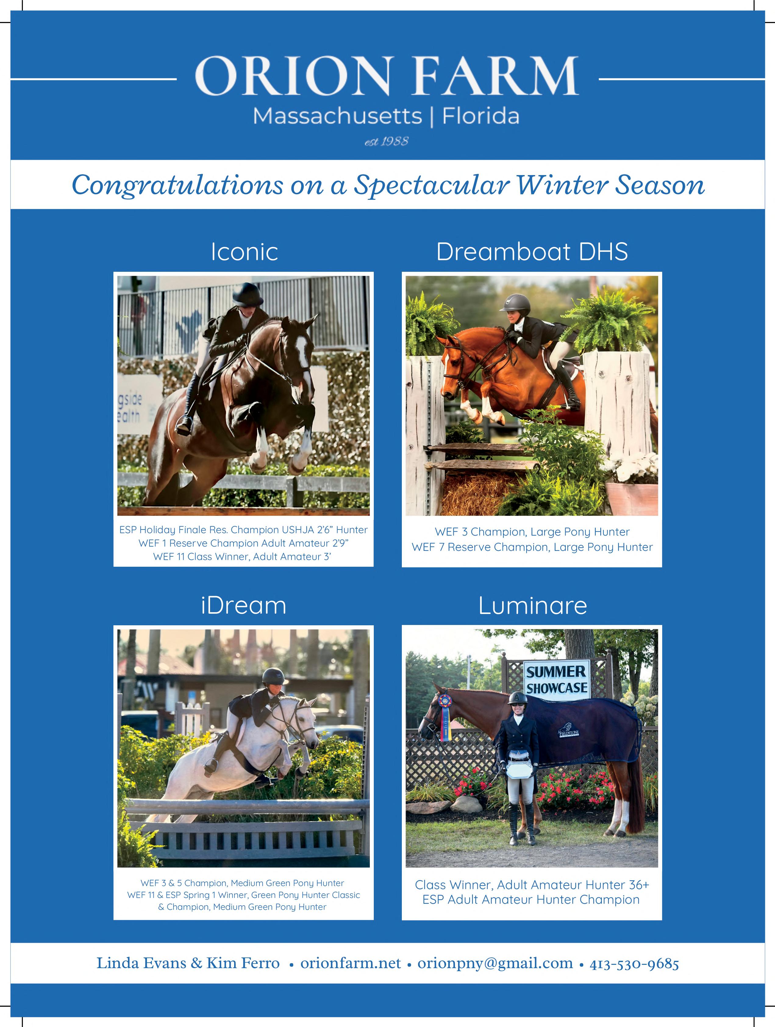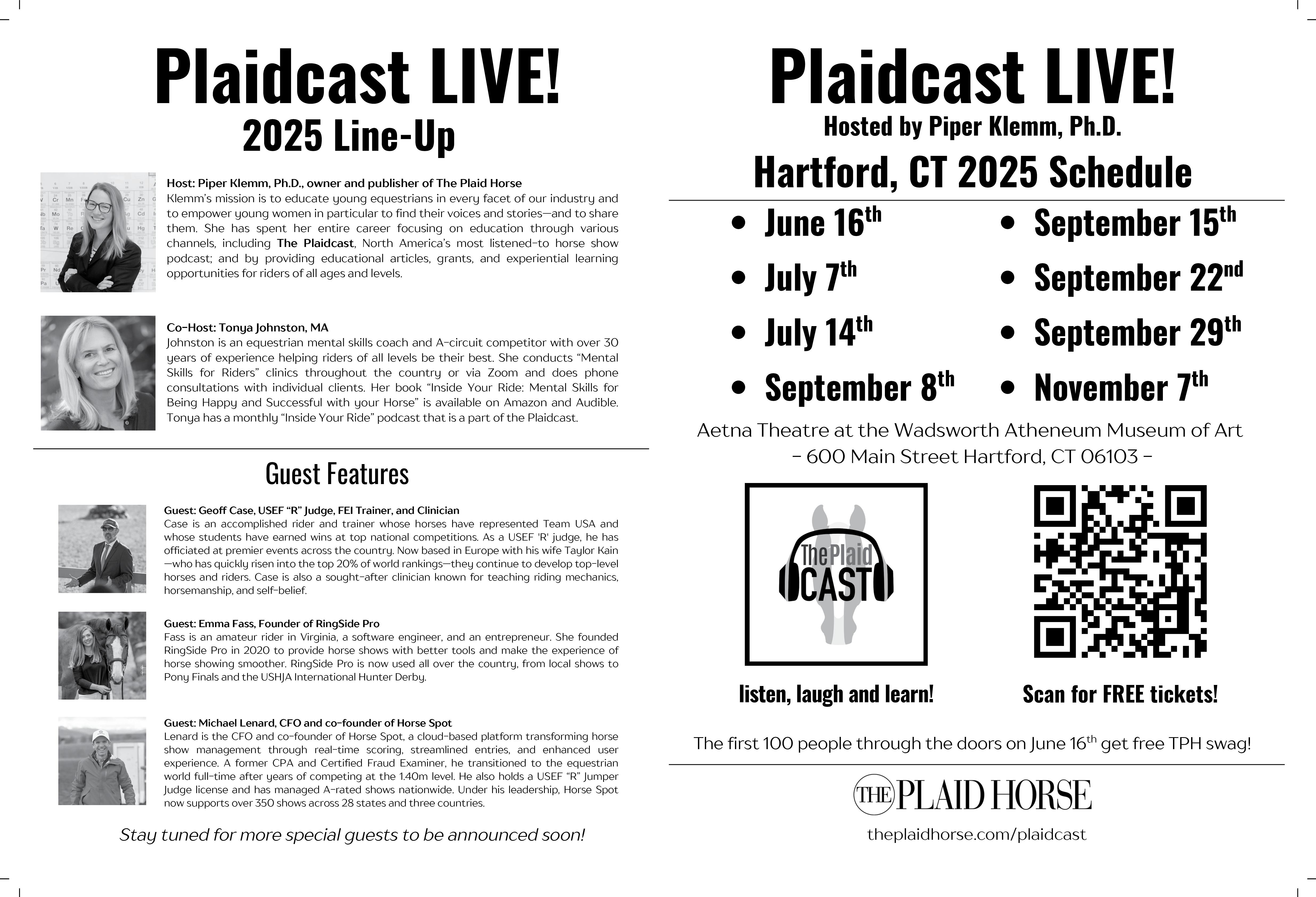 GRAPHICS: BIG WILD CREATIVE; PHOTOS: THE PLAID HORSE, HYPERION STUD, FOXHALL EQUINE, UPPERVILLE HORSESHOW, THE WILLING EQUINE