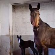 We had the most gracious hosts and saw the most strategically horse-friendly farm, met babies and olympic medalists, went all over, and in the course of the tour came across a paddock with a very hairy horse with the snow gently falling upon him. The Dutch Warmblood was out with several babies and they were eating and hanging out. I didn’t recognize him at rst, but then John Madden said that it was Authentic, then comfortably retired in his late teens and supervising some youngsters.