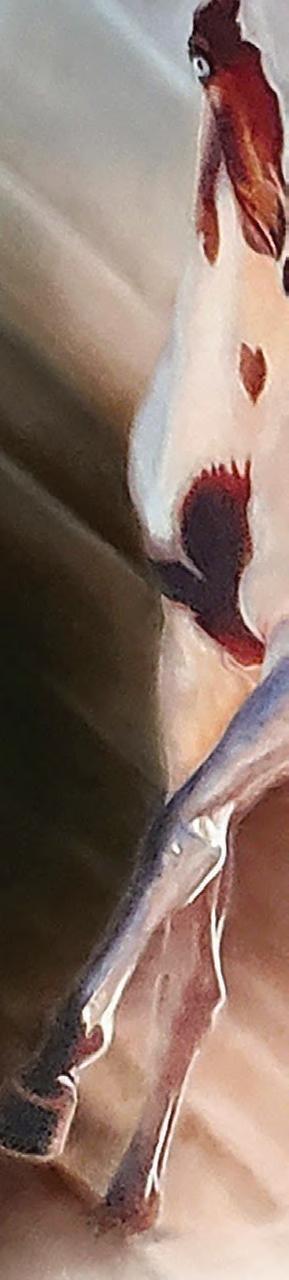 And then I watched a true horseperson take the time and have a response that was measured, practiced, and intuitive from hundreds of thousands of hours. It was calm, it addressed the leading issue, it was comforting, and it was e ective. It was not for people in a hurry or people who didn’t care about the future of the animal. It was the same thing that has been done a thousand times with this horse with the hopes that next time he will feel the reaction that would be helpful. Next time he will believe that there are no scary monsters, and the fundamental training belief that any horse, no matter how many years it takes, can get over their genetic suspiciousness and trust their situations.