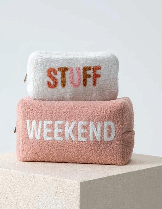 L 6” x W 0.25” x H 4” • double-sided glass beads, polyester and cotton; top zip closure • India v MSRP $48 min 2 $22 ea