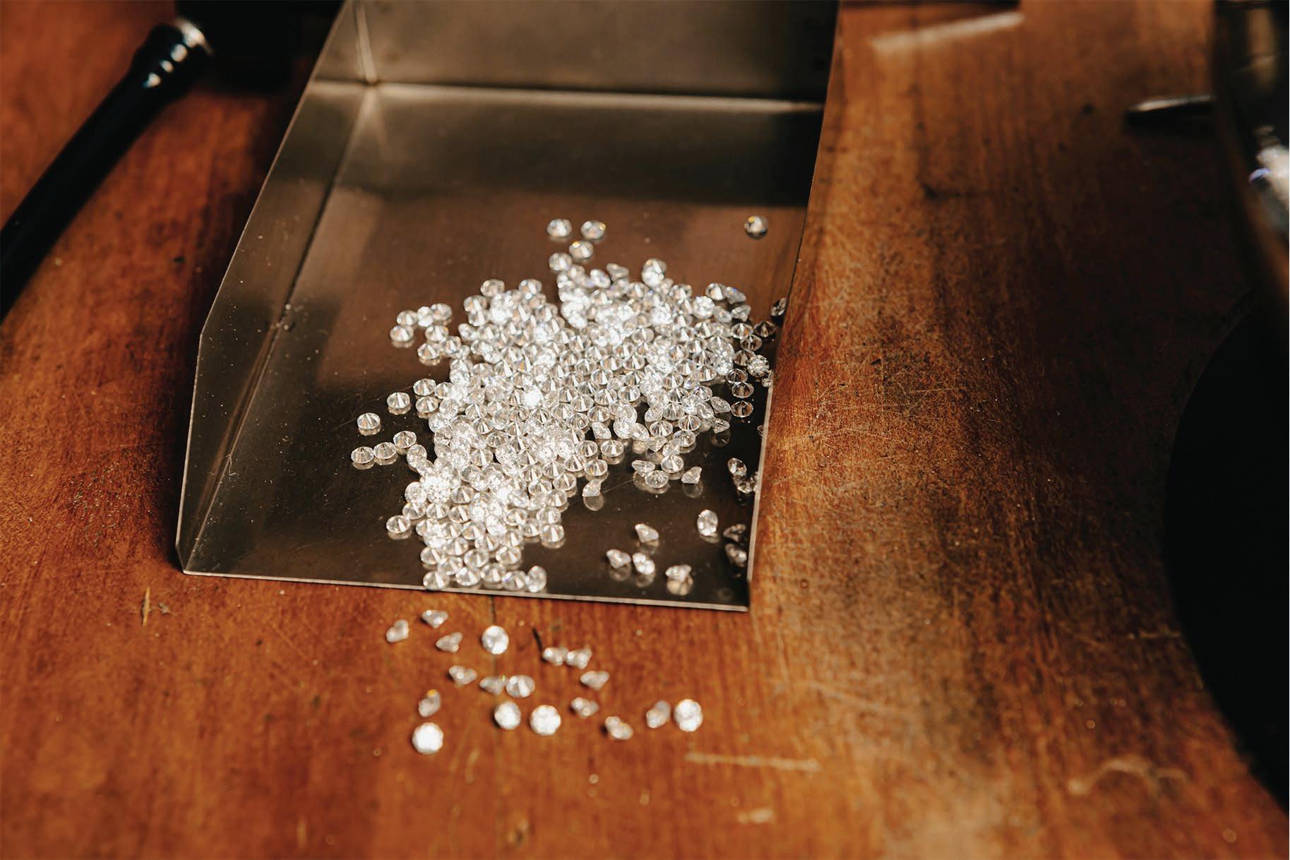 When an engagement ring is cut, up to 60% of the rough diamond is often thrown away. We sort and use these tiny symbols of love in our jewelry, reducing environmental waste and making our jewelry completely sustainable.