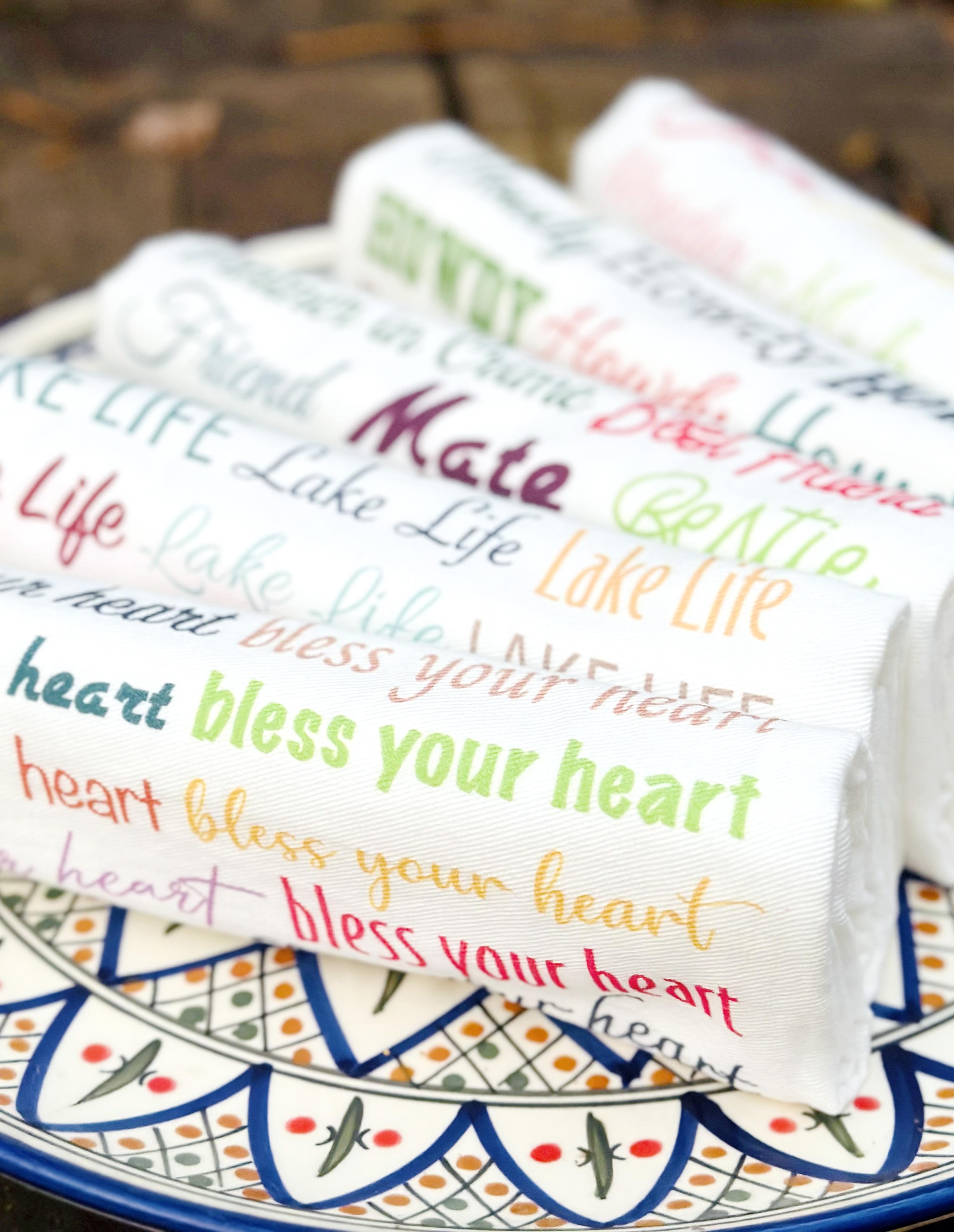 Our 100% American-made towels are produced with cotton that is grown, milled, and sewn within a few hundred miles of our Auburn, AL print shop. They are made by the world’s leading manufacturers of spun yarn and textile mills.