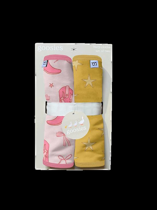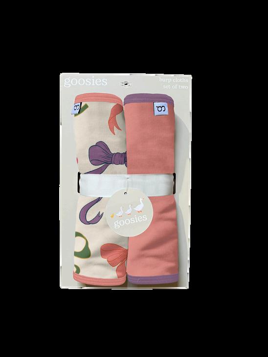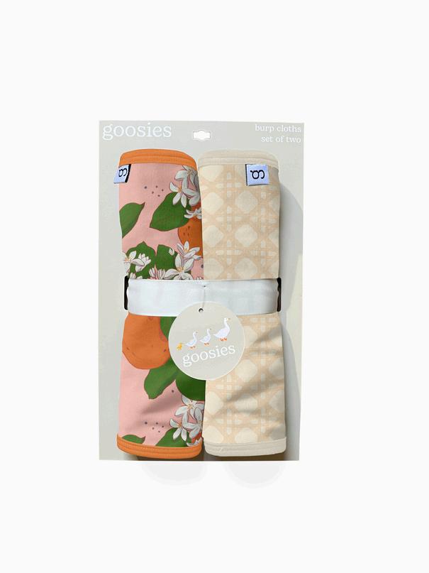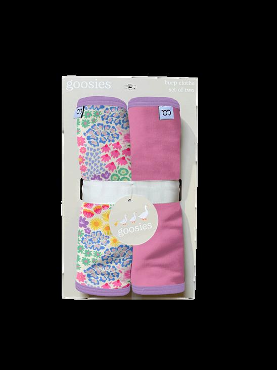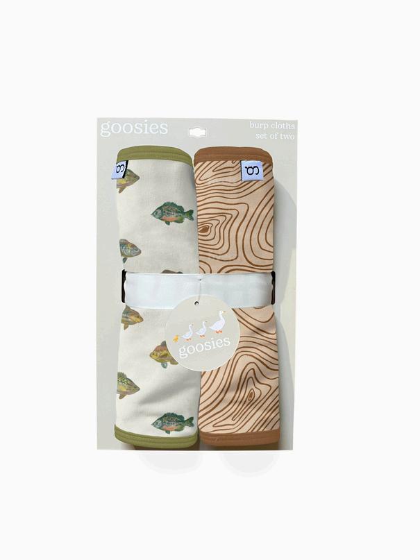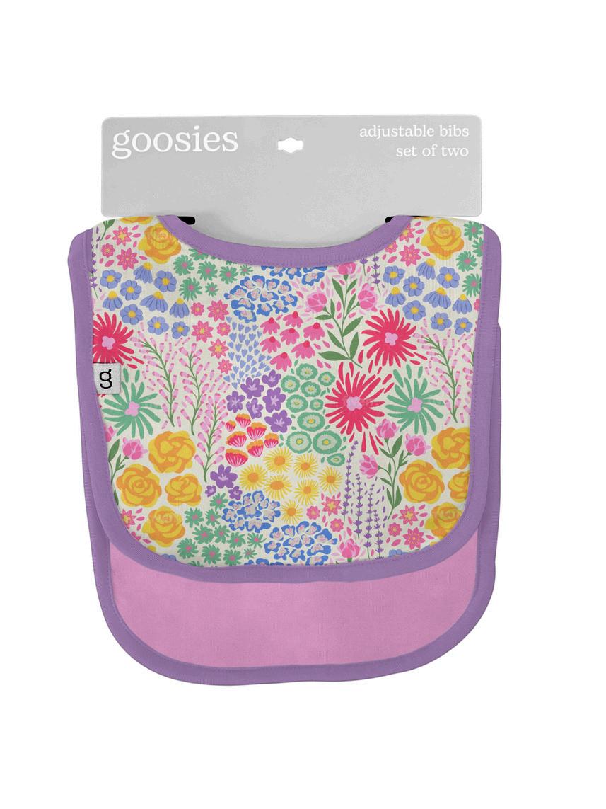 All products are made with 95% bamboo from viscose, 5% spandex fabric. Adjustable bibs and burp cloth are backed with 65% polyester 35% cotton terrycloth