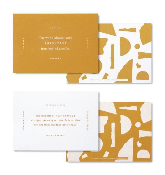 *Terms and conditions apply. See page 199 for details. COMPENDIUM wholesale gift and card catalog 6 Gift Books 44 Journals & Notebooks 65 Stationery 77 Shareable Inspiration 87 Kids & Family 110 Baby 114 Positively Green Cards 149 Love Muchly Cards 182 Displays & Packages 199 Terms & Conditions 202 Showrooms & Sales Reps BE SURE TO TAKE ADVANTAGE OF OUR SMART BUYING PROGRAMS!* Save on shipping with every order. $5 SHIPPING Increase margins with our volume discounts. DISCOUNTED PRODUCT If something doesn’t work for you, we’ll take it back. RISK-FREE RETURNS FALL 2024 6 | GIFT BOOKS 65 | STATIONERY 182 | DISPLAYS & PACKAGES