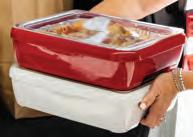 • Serve a variety of snacks and veggies with specially shaped partitions designed to hold in place for transport