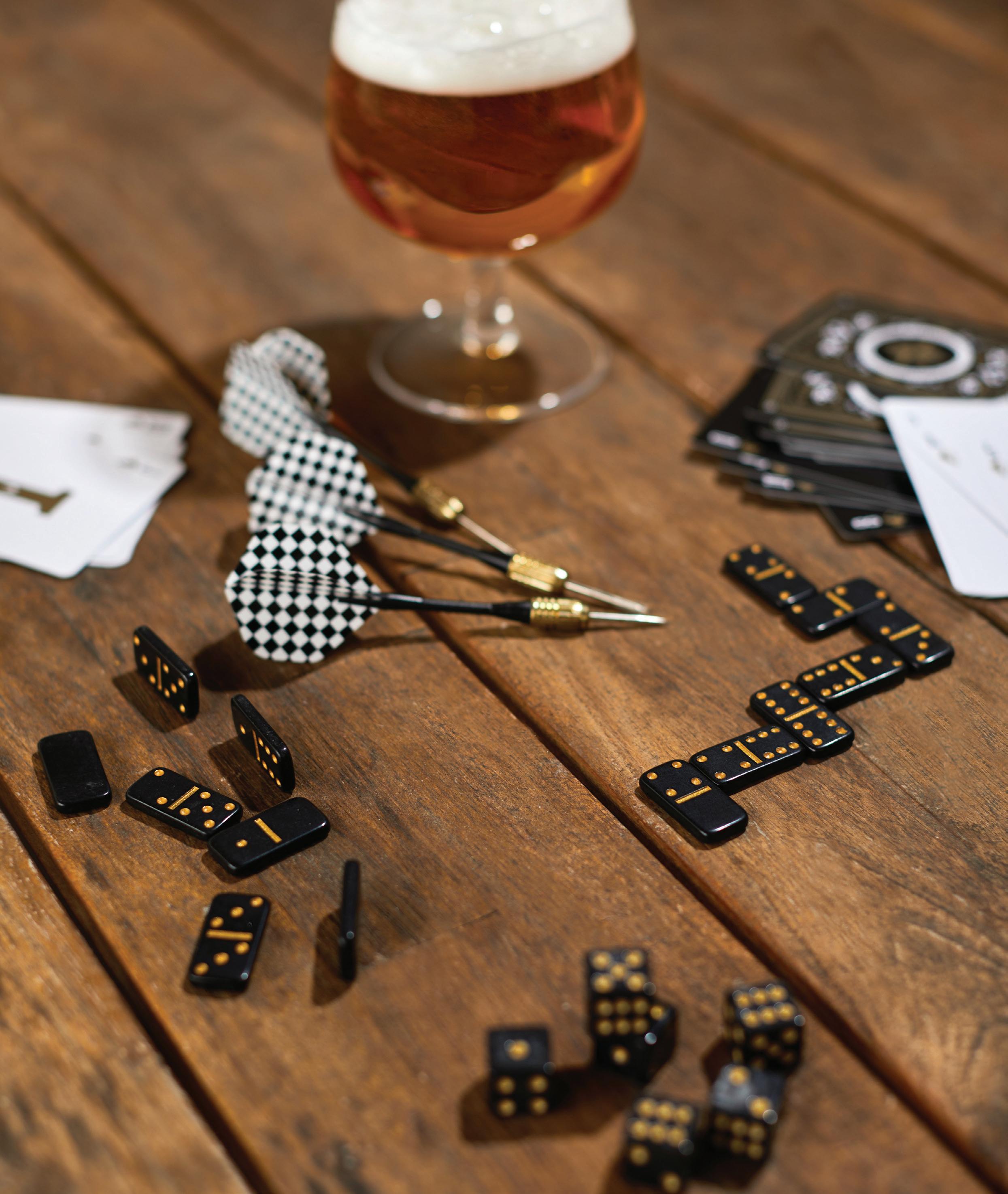 Have more fun at the bar with this collection of 4 Bar Games, featuring dice, dominoes, darts, and playing cards! Game instructions included. Packaged in tin.